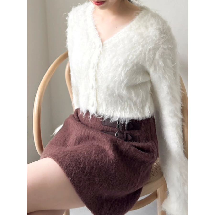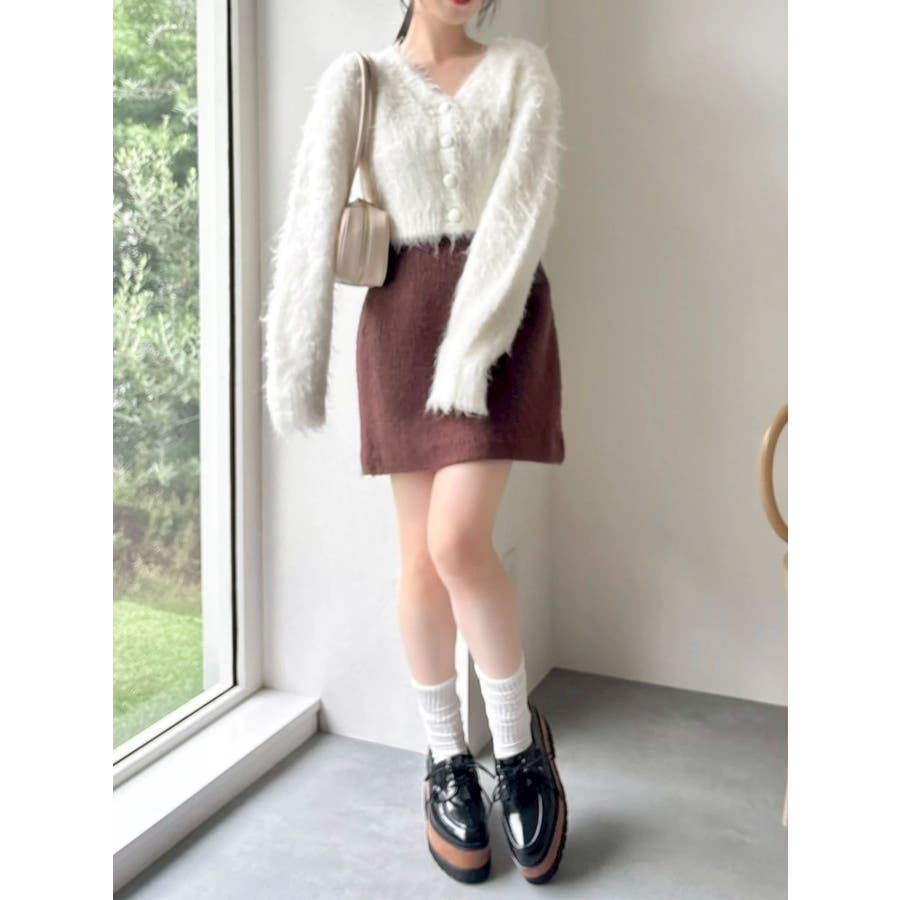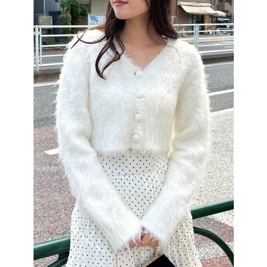 【アイテム】 ふわふわの“わたがし”のようなニット素材が、見た目にも触り心地にも癒しをくれる一枚。軽やかなのにしっかり暖かく、編み目が立体感と柔らかさを演出。ショート丈でウエスト位置を高く見せてくれるので、スタイルアップも叶います。【スタイリング】 甘めなパステルカラーがコーデの主役に。ハイウエストボトムと合わせれば、バランスの良い着こなしに。ワンピースの上にさらっと羽織っても可愛く、ミニボトムと合わせれば韓国っぽスタイルにも◎。肌寒い季節のライトアウターとしても重宝する、着回し力抜群のアイテムです。---------------------------------------------------- 気になるアイテムはお気に入り登録がおすすめ 入荷情報やラスト1点、お得なプライスダウンの情報をいち早くお届け! ぜひご登録ください◎ ---------------------------------------------------- ※実際にお届けする商品と仕様やサイズが異なる場合がございます。 また生産の都合上、お届け時期が前後する場合がございます。【商品特徴】透け感:なし伸縮性:ややあり生地の厚さ:普通サイズ感:普通裏地:なしポケット:なし