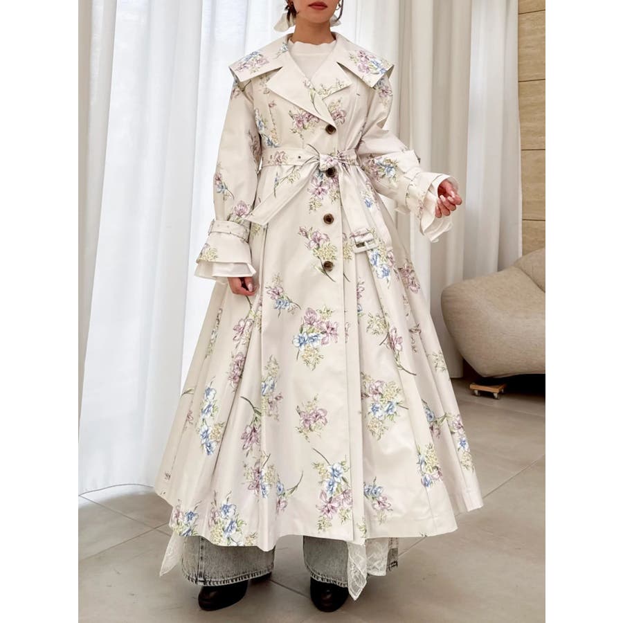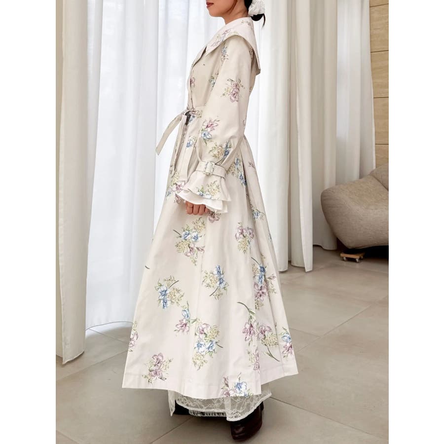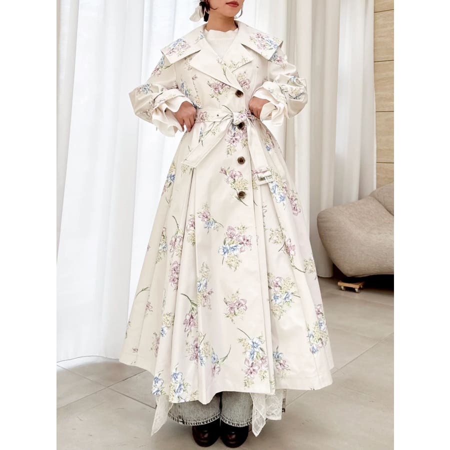 【商品】存在感のあるビッグカラーが顔まわりを華やかに見せるトレンチコート。袖口にはさりげないフリルディテールを施し、クラシカルな中にも女性らしいニュアンスをプラス。程よいハリのあるきれいめな素材を使用し、シルエットを美しくキープ。ソフトロックなハトメを効かせたウエストベルトで引き締めれば、ヘルシーさを加えたレディライクなスタイリングに昇華します。【スタイリング】ボウタイブラウスやハイネックニットを合わせて上品なレディスタイルに、デニムやパンツで合わせればきれいめカジュアルにも◎。ベルトを締めてメリハリをつけると、より女性らしいシルエットが引き立ちます。※実際にお届けする商品と仕様やサイズが異なる場合がございます。また生産の都合上、お届け時期が前後する場合がございます。【商品特徴】透け感:なし伸縮性:なし生地の厚さ:普通サイズ感:普通裏地:ありポケット:あり(前)