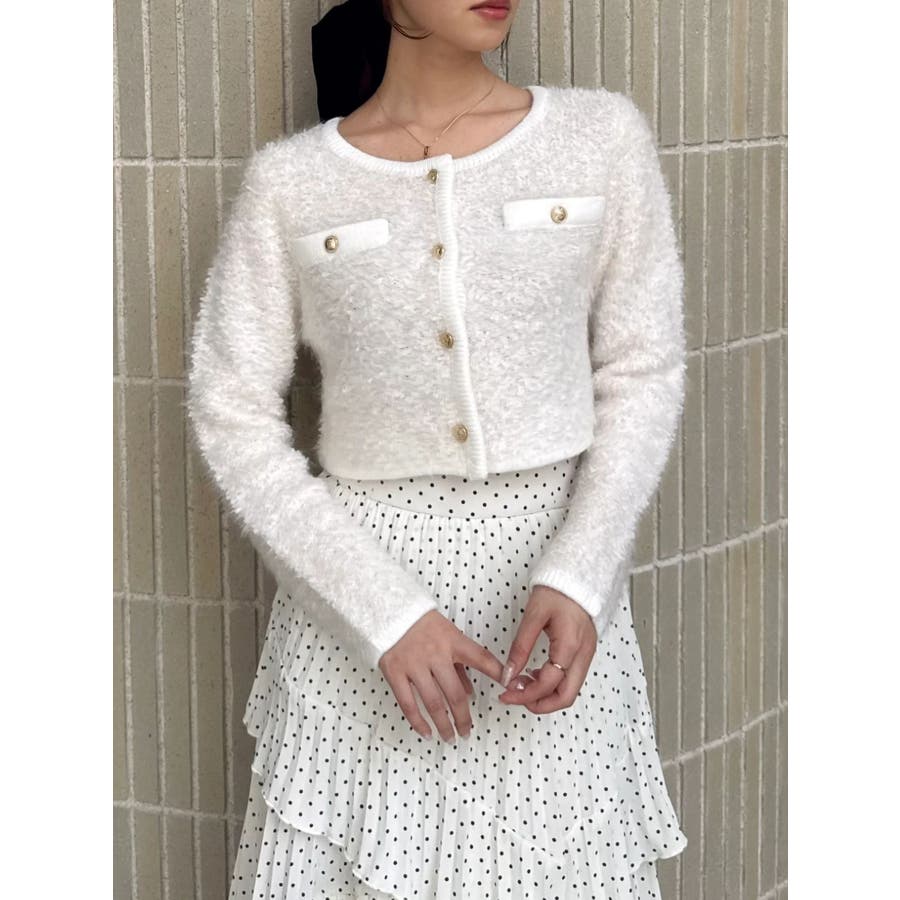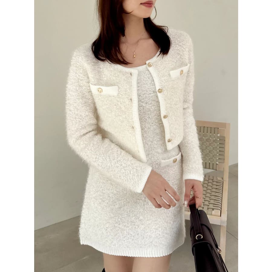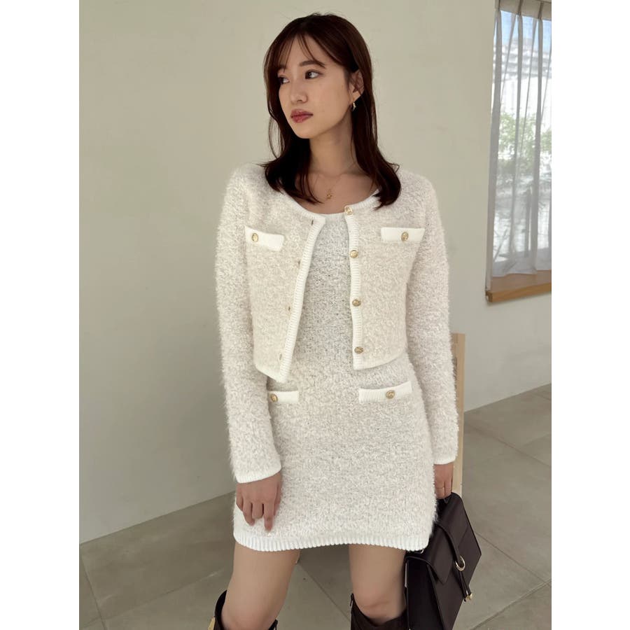 ▼セットで着れるワンピースはこちら▼ヘアリーニットミニワンピース【アイテム】ふんわりとしたヘアリー素材が魅力のニットカーディガン。複数の糸を調合し、ツイードライクに仕上げました。軽やかでやわらかな風合いが女性らしい抜け感を演出し、羽織るだけで季節感と華やかさをプラスします。ややコンパクトなシルエットで、ジャケット風のデザインできちんと感もありながらデイリーにもお出かけにも幅広く活躍する、大人のフェミニンスタイルに欠かせない1枚です。【スタイリング】同素材のミニワンピースのセットアップ合わせで華やかさアップ。シアー系ロングスカートでレディなスタイリングはもちろん、デニムパンツ合わせでヘルシーなスタイリングにも好相性。ボウタイブラウスをレイヤードしたクラシカルな着こなしもおすすめです。 ---------------------------------------------------- 気になるアイテムはお気に入り登録がおすすめ 入荷情報やラスト1点、お得なプライスダウンの情報をいち早くお届け! ぜひご登録ください◎ ---------------------------------------------------- ※実際にお届けする商品と仕様やサイズが異なる場合がございます。 また生産の都合上、お届け時期が前後する場合がございます。 【商品特徴】透け感:なし伸縮性:なし生地の厚さ:普通サイズ感:普通裏地:なしポケット:なし