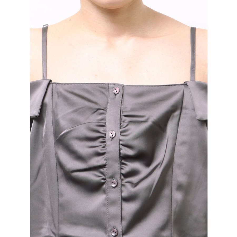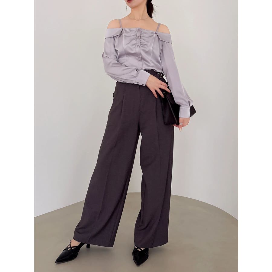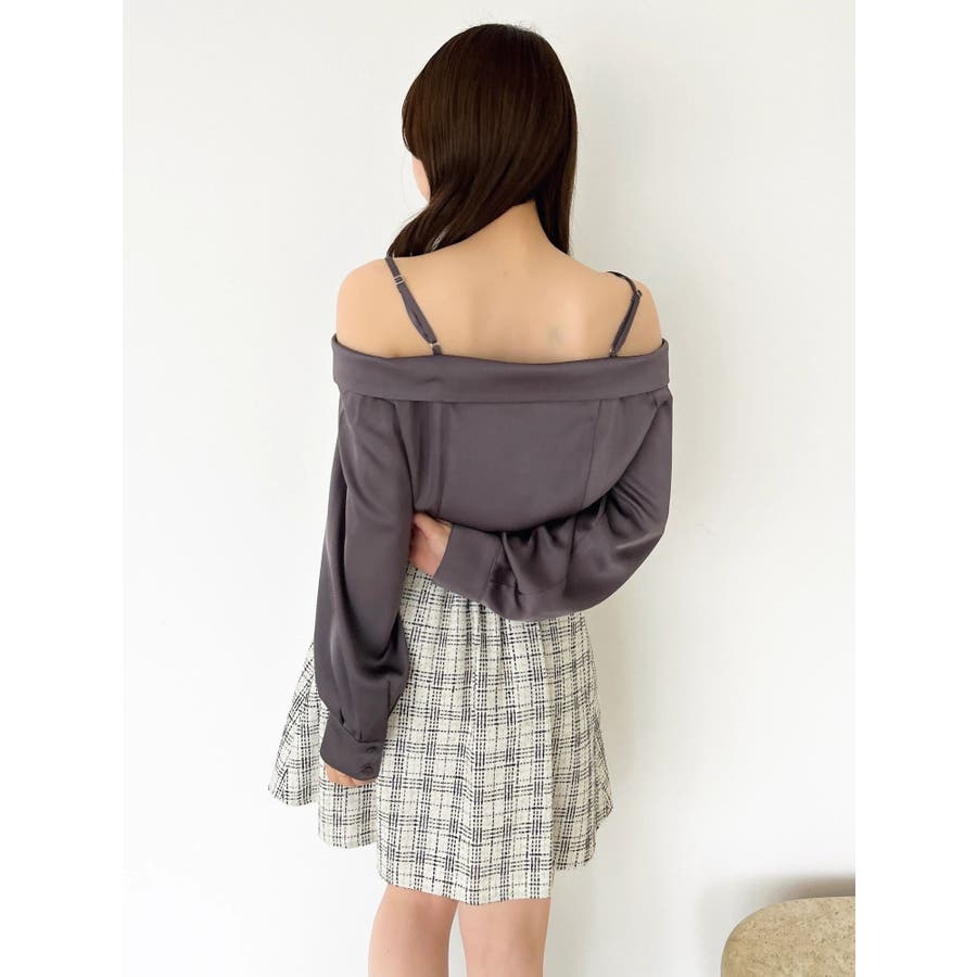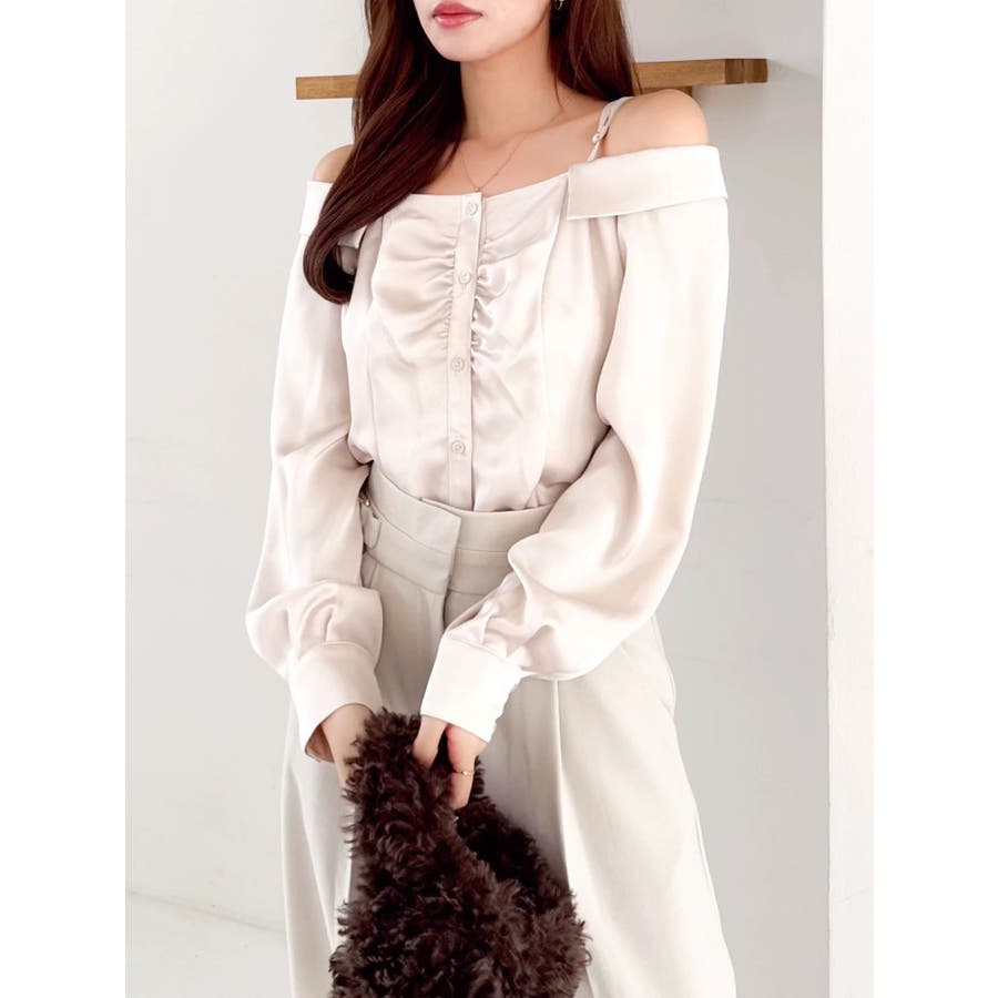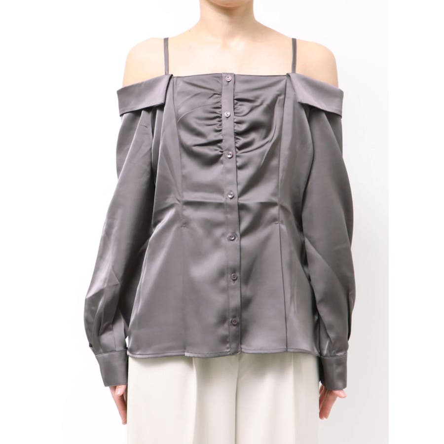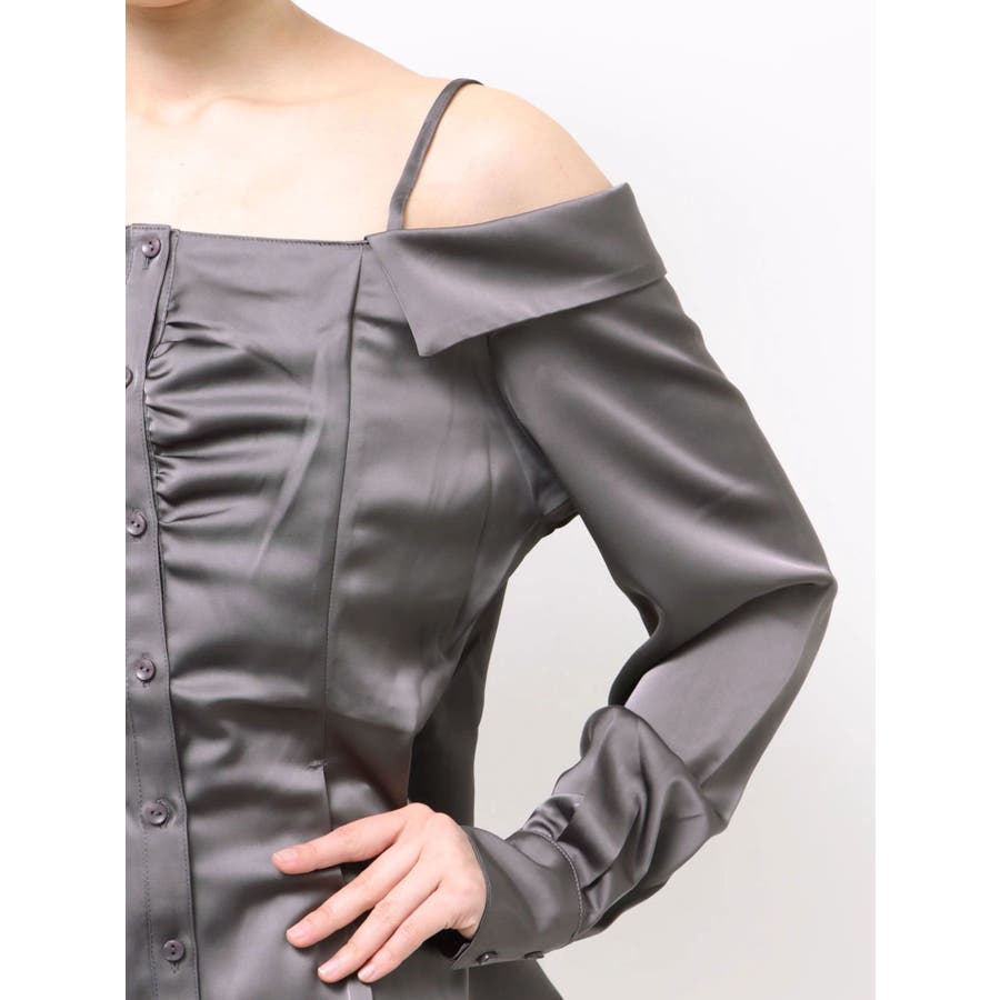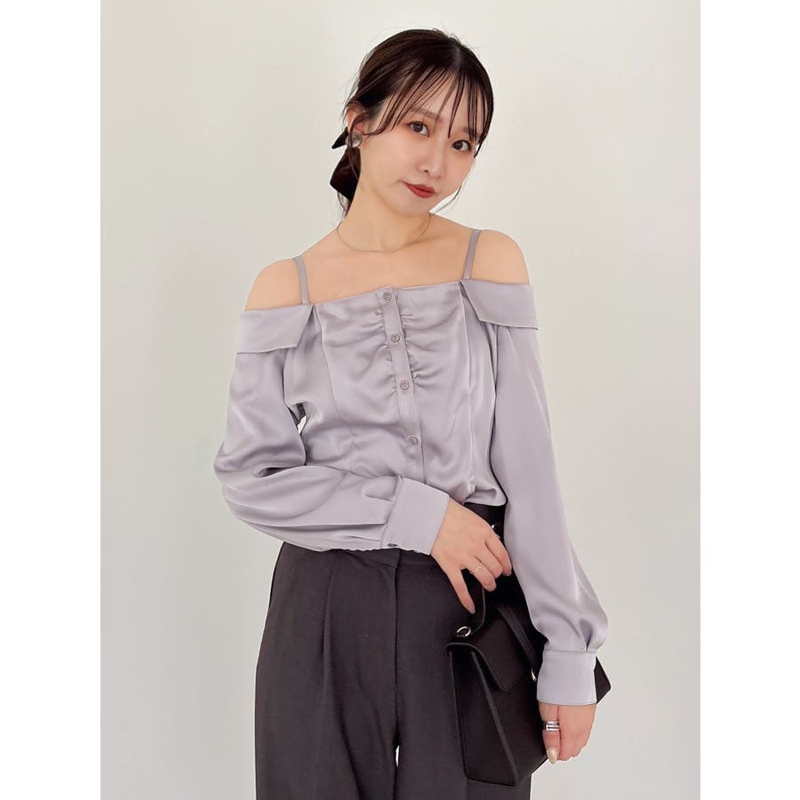 久間田琳加 × dazzlin(ダズリン)11/28 fri 12:00 予約START!>>特設ページはこちら<<【商品】オフショルデザインにシャツカラーを組み合わせた新鮮なデザインが魅力のブラウス。ロングシーズン使える上品な光沢のサテン素材が、女性らしい艶感と都会的なムードを引き立てます。ペプラムシルエットにすることでスカートにもパンツにも合わせやすいのも魅力。オフショルで程よい抜け感を演出し、きちんと感のあるシャツディテールで大人の洗練された印象に。 【スタイリング】タイトミニスカートやスラックスパンツを合わせて、フェミニンさとモード感を兼ね備えたスタイリングに。ペプラムシルエットでボトムスイン、アウト両方のコーデを楽しめるのも魅力です。 ---------------------------------------------------- 気になるアイテムはお気に入り登録がおすすめ 入荷情報やラスト1点、お得なプライスダウンの情報をいち早くお届け! ぜひご登録ください◎ ---------------------------------------------------- ※実際にお届けする商品と仕様やサイズが異なる場合がございます。 また生産の都合上、お届け時期が前後する場合がございます。 【商品特徴】透け感:なし伸縮性:なし生地の厚さ:薄手サイズ感:普通裏地:なしポケット:なし