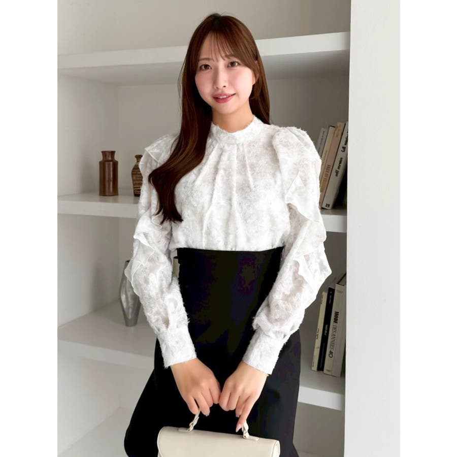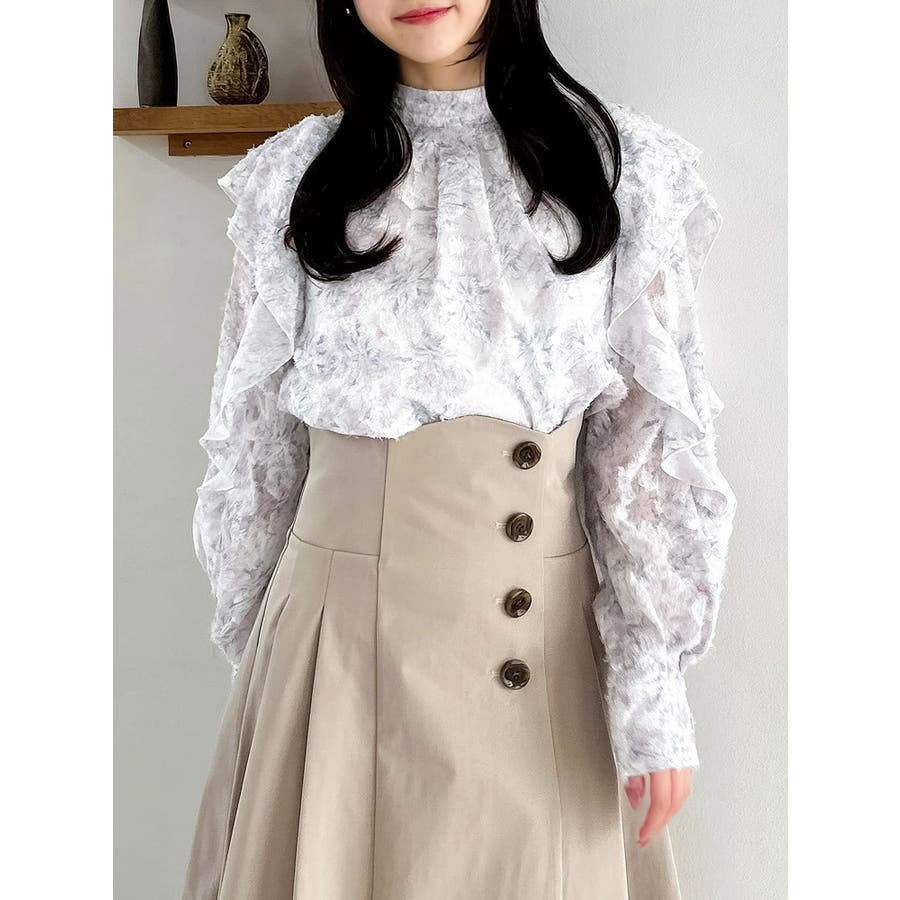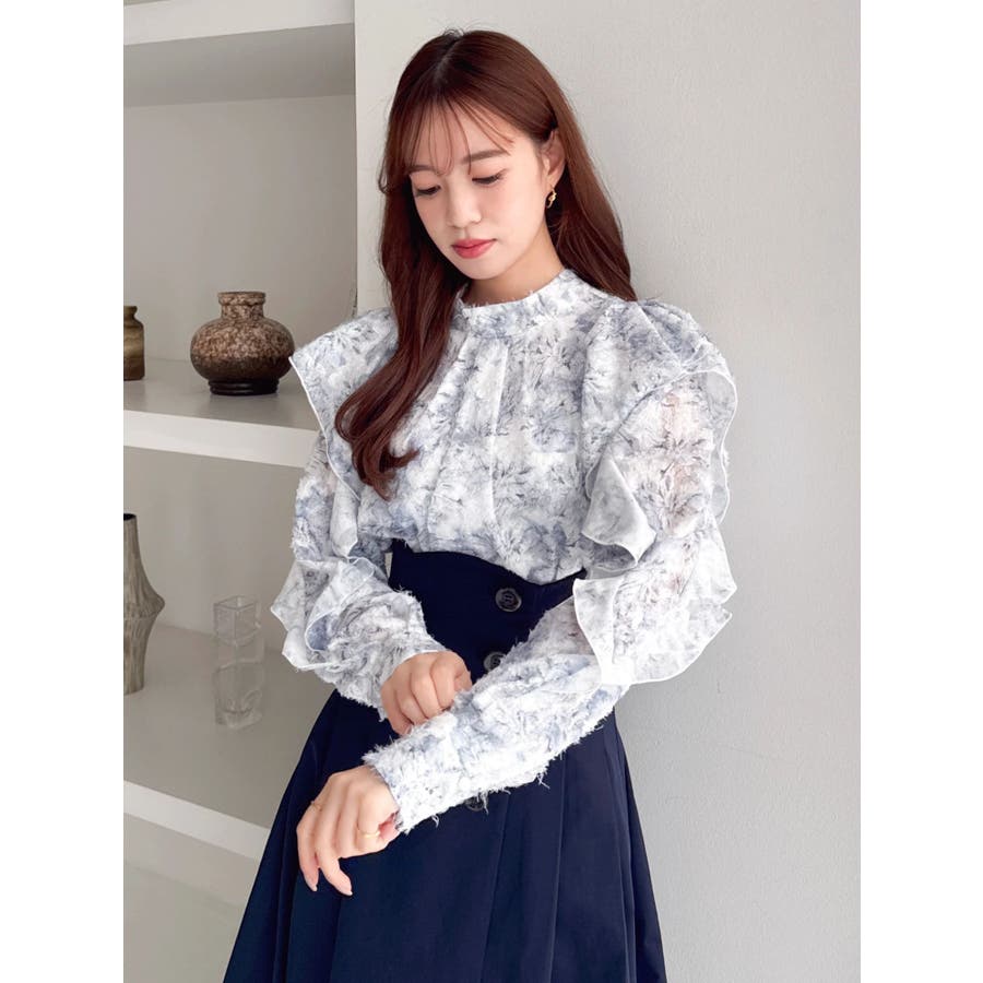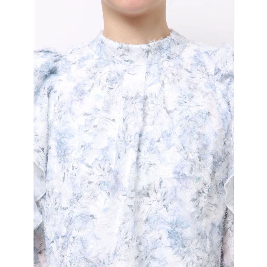 【商品】柔らかな毛足あるのシフォン素材に、繊細なフラワープリントを散りばめたブラウス。ほんのり透け感のある質感が、春の空気を纏うような軽やかさを演出します。袖にはギャザーを寄せてふんわりとしたボリュームをプラスし、動くたびに揺れるシルエットがフェミニンな印象に。デートや女子会はもちろん、オフィスカジュアルにも使える万能アイテムです。【スタイリング】首元はハイネックデザインで、ジャンスカやキャミワンピのインナーにもぴったりです。ミニスカートでスイートな着こなしもおすすめです。※実際にお届けする商品と仕様やサイズが異なる場合がございます。また生産の都合上、お届け時期が前後する場合がございます。【商品特徴】透け感:(袖部分のみ)あり伸縮性:なし生地の厚さ:薄手サイズ感:普通裏地:ありポケット:なし
