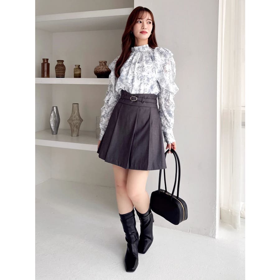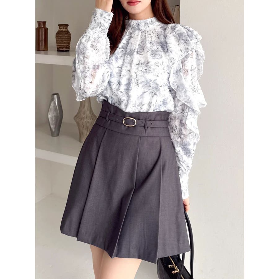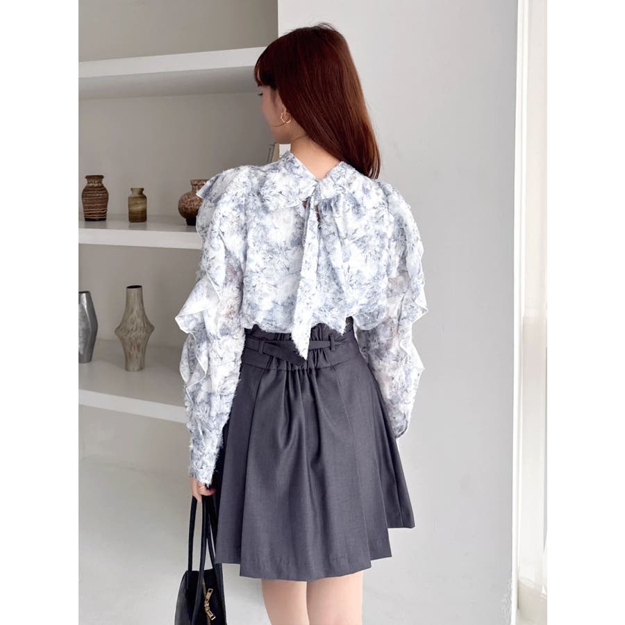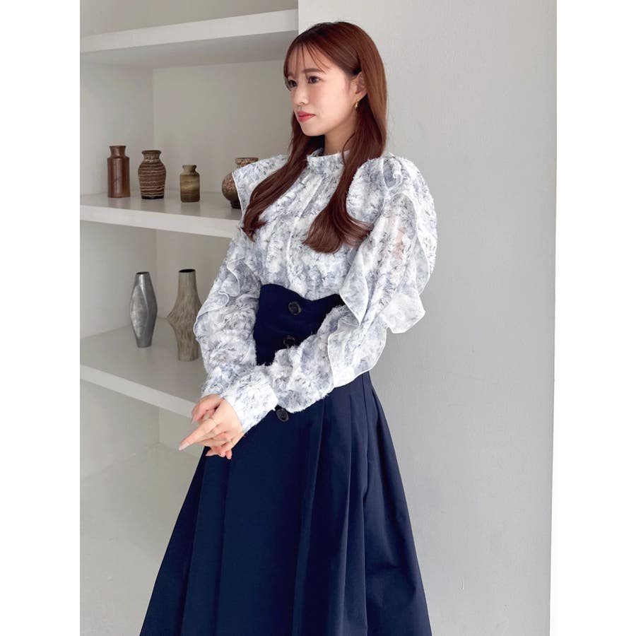 【商品】柔らかな毛足あるのシフォン素材に、繊細なフラワープリントを散りばめたブラウス。ほんのり透け感のある質感が、春の空気を纏うような軽やかさを演出します。袖にはギャザーを寄せてふんわりとしたボリュームをプラスし、動くたびに揺れるシルエットがフェミニンな印象に。デートや女子会はもちろん、オフィスカジュアルにも使える万能アイテムです。【スタイリング】首元はハイネックデザインで、ジャンスカやキャミワンピのインナーにもぴったりです。ミニスカートでスイートな着こなしもおすすめです。※実際にお届けする商品と仕様やサイズが異なる場合がございます。また生産の都合上、お届け時期が前後する場合がございます。【商品特徴】透け感:(袖部分のみ)あり伸縮性:なし生地の厚さ:薄手サイズ感:普通裏地:ありポケット:なし