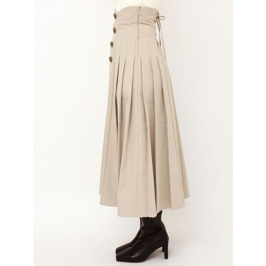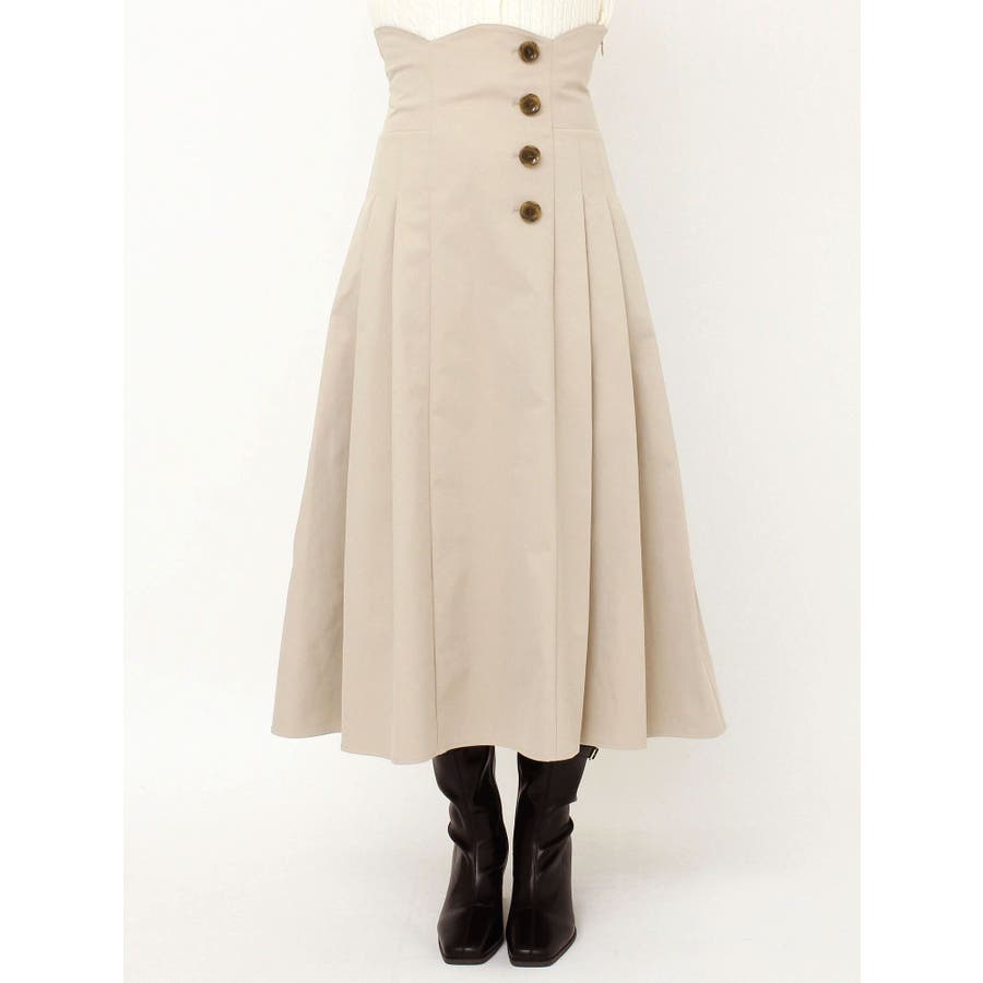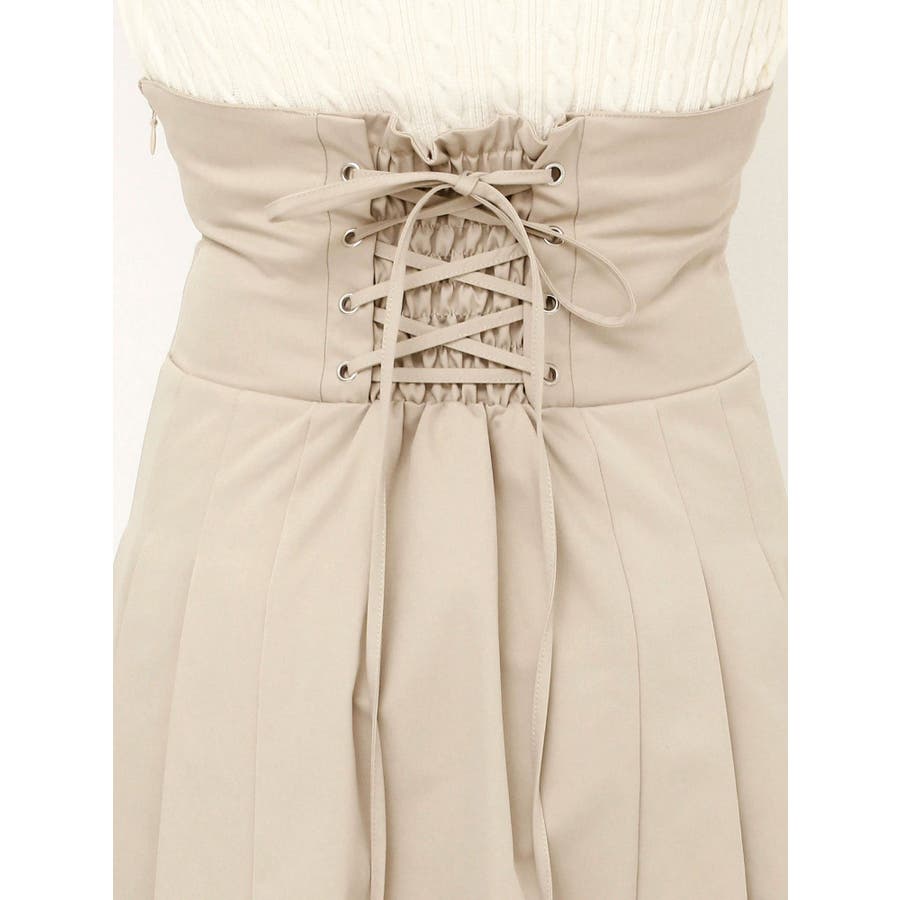 【商品】動くたびに揺れるプリーツと、コルセット風ウエストデザインが女性らしいシルエットを演出する1枚。トレンチコートのディテールを取り入れたクラシックなデザインで、きちんと感もありながら柔らかい雰囲気に。後ろにレースアップを施すことでウエストのメリハリをつけられるので、スタイルアップも叶います。 【スタイリング】同素材のジャケットやコートと合わせて、セットアップのように着ると、一枚で華やかな印象に。ボウタイブラウスやコンパクトニットを合わせた、レディライクなスタイリングがおすすめです。▼このスカートに合わせるならこれ?・2WAYボウタイタックペプラムブラウスⅡ・ヘアリーフラワーシフォンブラウス・シアーラッフルカットトップス---------------------------------------------------- 気になるアイテムはお気に入り登録がおすすめ 入荷情報やラスト1点、お得なプライスダウンの情報をいち早くお届け! ぜひご登録ください◎ ---------------------------------------------------- ※実際にお届けする商品と仕様やサイズが異なる場合がございます。 また生産の都合上、お届け時期が前後する場合がございます。 【商品特徴】透け感:なし伸縮性:なし生地の厚さ:普通サイズ感:普通裏地:ありポケット:なし