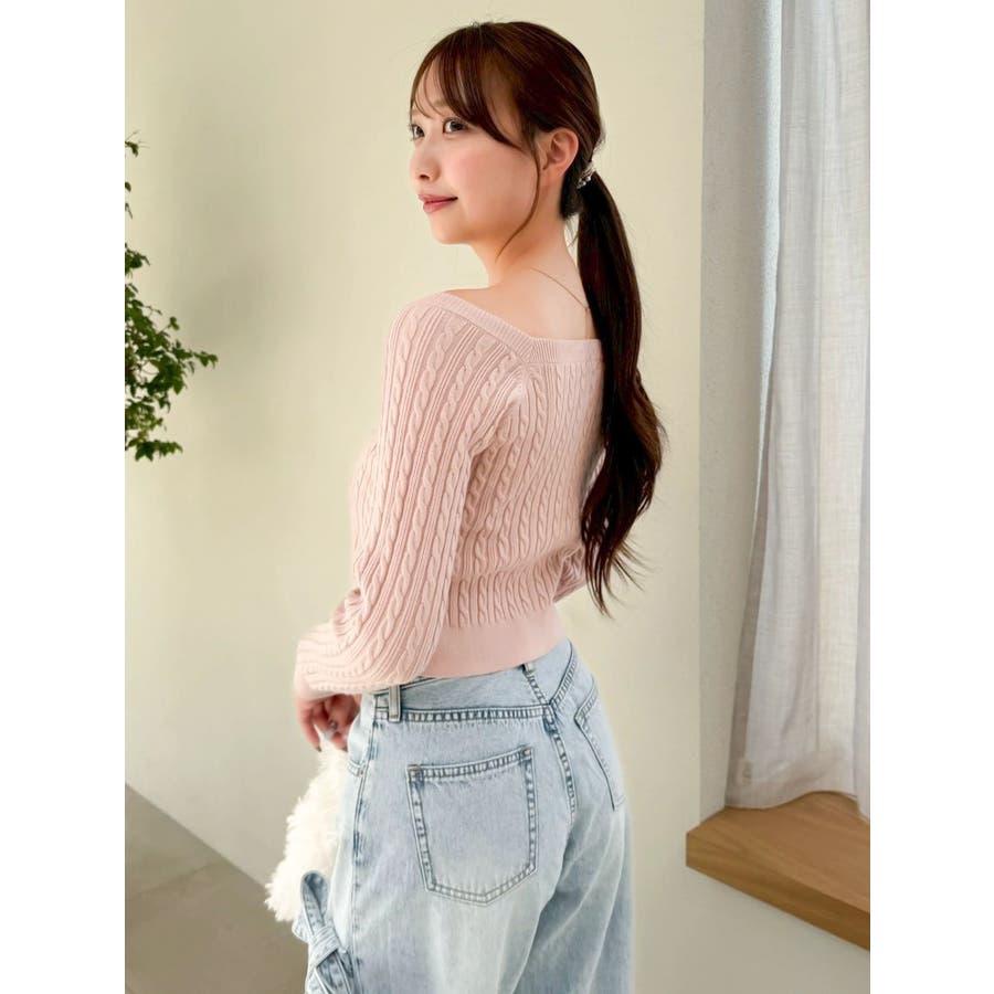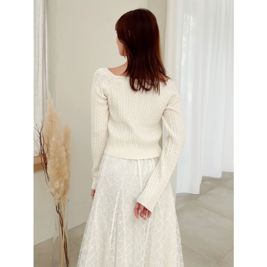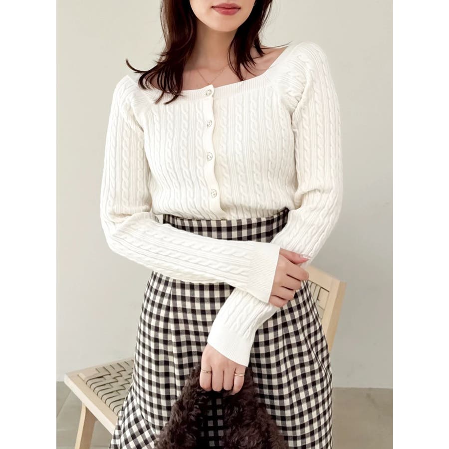 ミニケーブルスクエアニットトップス