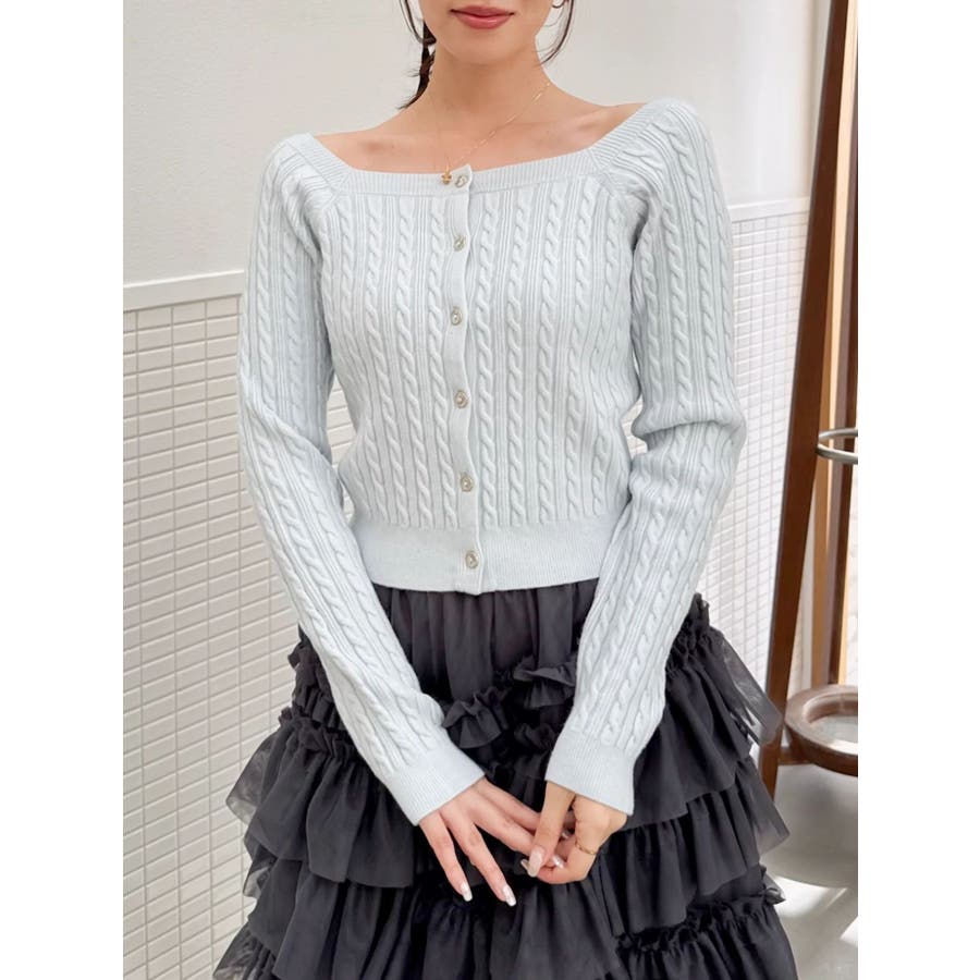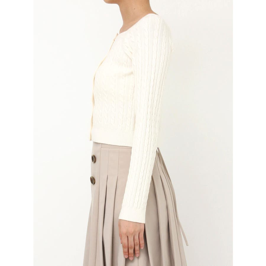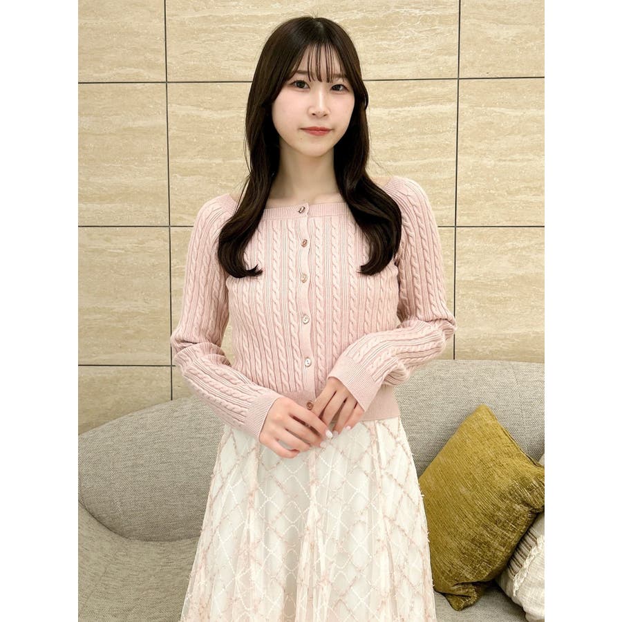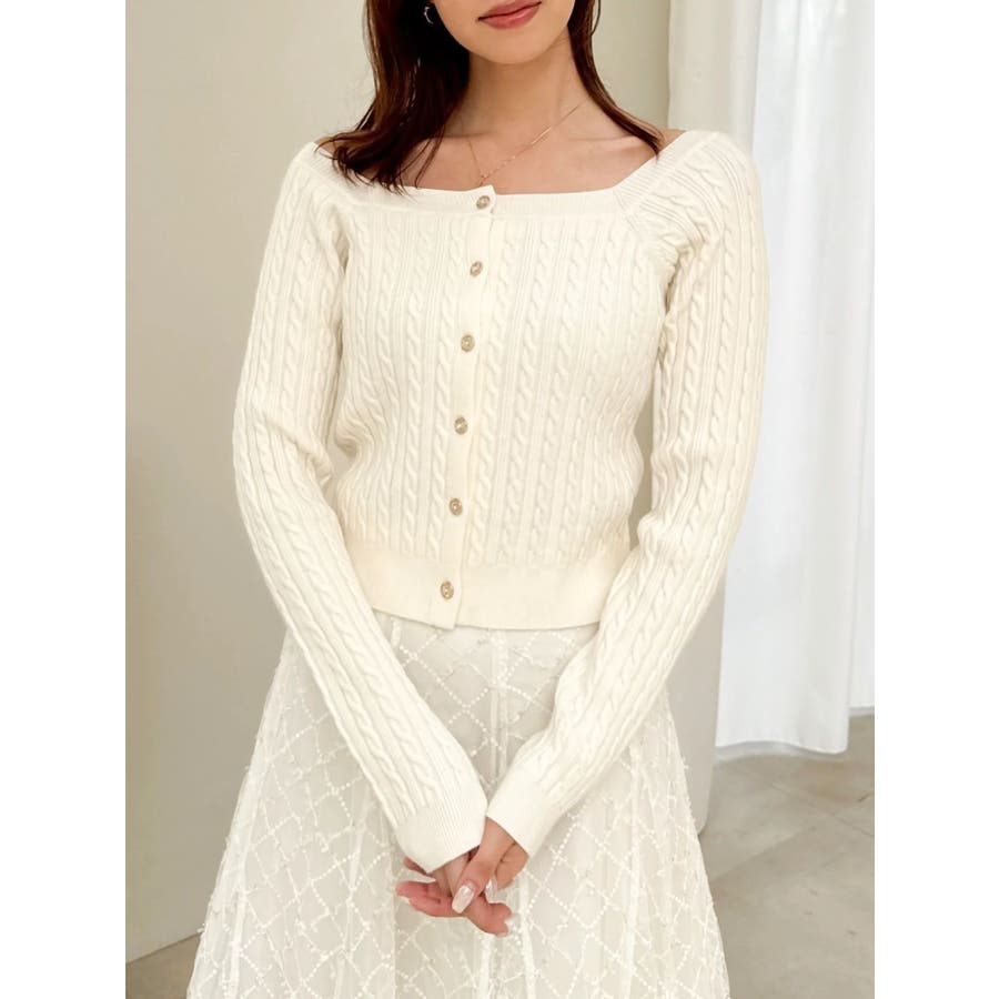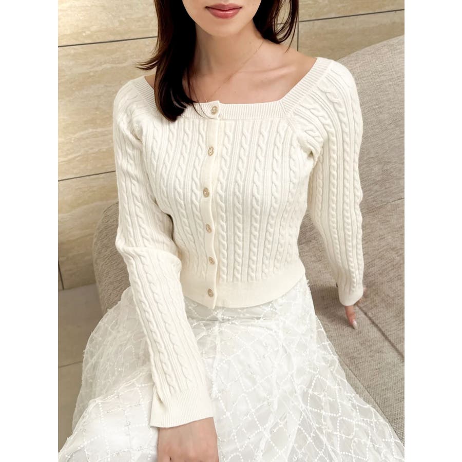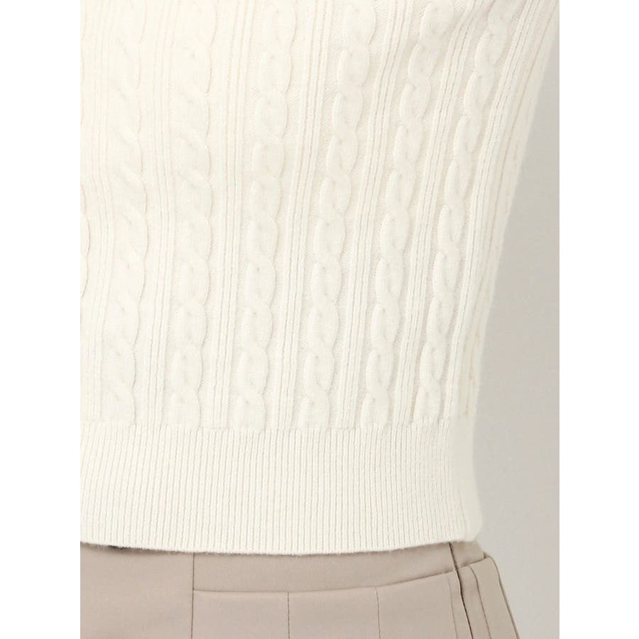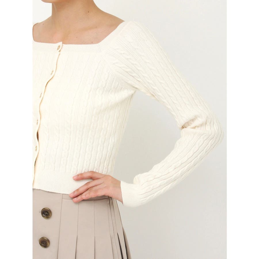 【商品】繊細なミニケーブル編みが縦ラインを強調し、すっきりとした印象に仕上げてくれるコンパクトニット。スクエアネックで、デコルテをすっきりとさせて女性らしさを引き立てます。柔らかな素材感で着心地も抜群。インスタイルでももたつかず、スカートにもパンツにも合わせやすい万能トップスです。【スタイリング】ミニ丈スカートで甘めにまとめれば、王道フェミニンスタイルに。デニムやスラックスでカジュアルダウンすれば、抜け感のある大人っぽコーデにシフト。意匠素材アイテムとの組み合わせも相性も良いです。 ※実際にお届けする商品と仕様やサイズが異なる場合がございます。また生産の都合上、お届け時期が前後する場合がございます。【商品特徴】透け感:なし伸縮性:あり生地の厚さ:普通サイズ感:普通裏地:なしポケット:なし