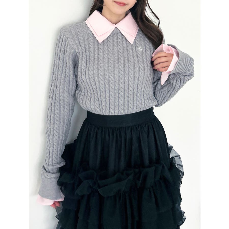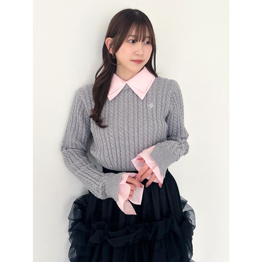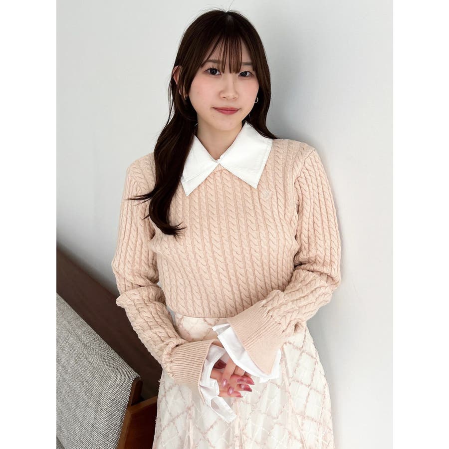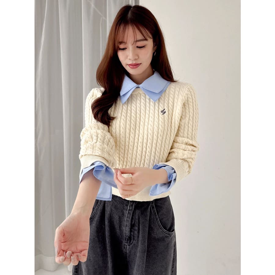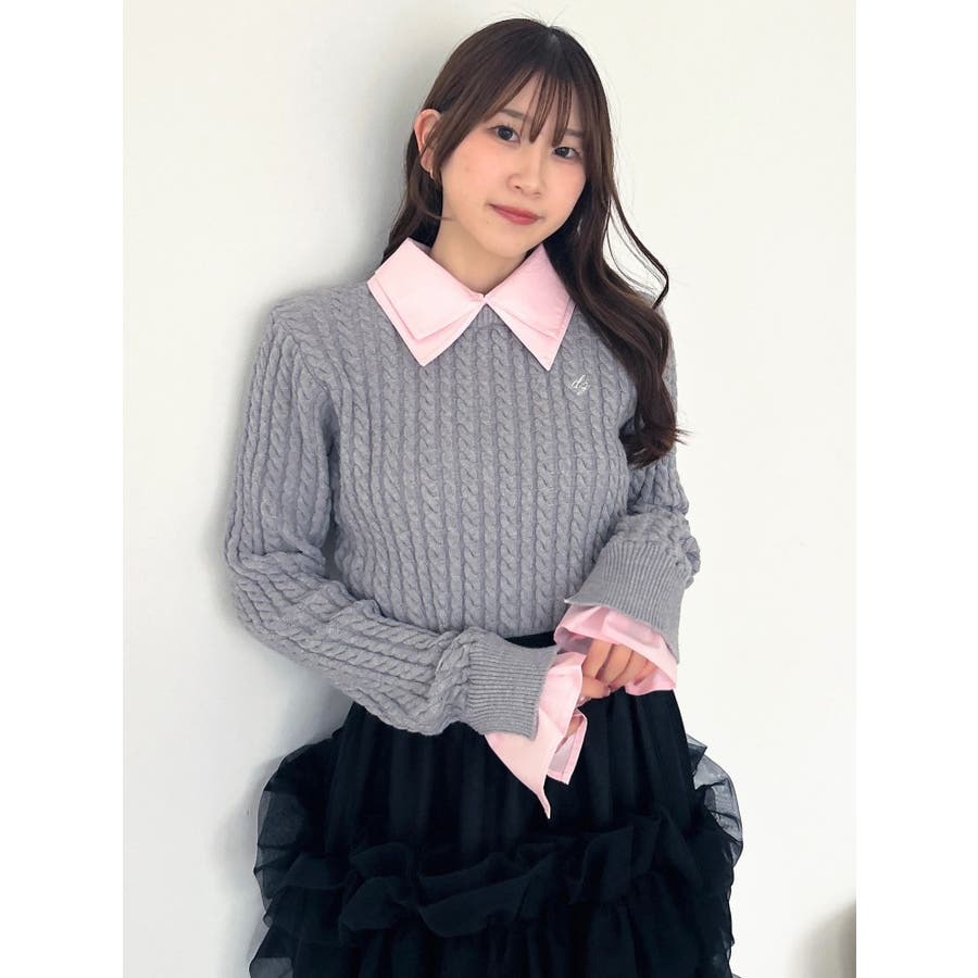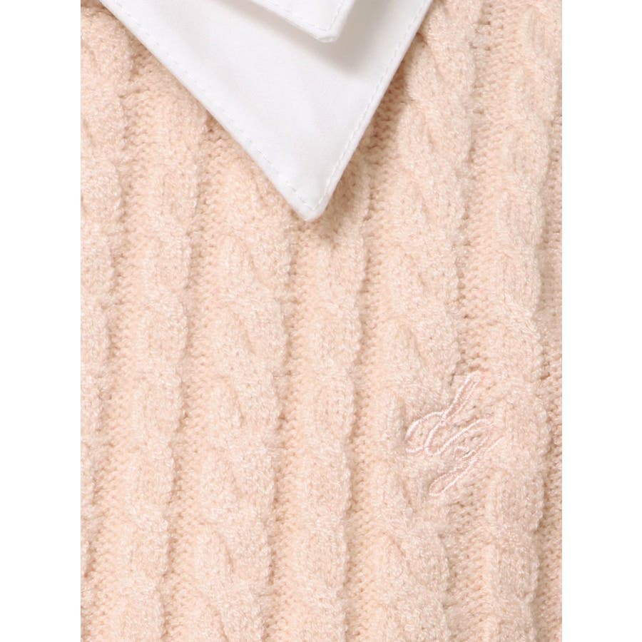 【アイテム】配色異素材ドッキングのケーブルニットプルオーバー。襟とカフスにはシャツ生地を使用し、トレンドの重ね着風のデザインで、一枚でもサマになるアイテムです。コンパクトなシルエットとケーブル編みの立体感が女性らしい印象を引き立て、胸元の刺繍ロゴがさりげないアクセントに。ニット部分は柔らかく伸縮性があり、着心地も抜群です。 【スタイリング】ベーシックなデザインで着回し力の高い一枚です。ボトムにワイドパンツや台形ミニスカートを合わせれば、トラッド感のある上品なスタイルに。フレアスカートなどと合わせてフェミニンカジュアルスタイルに仕上げます。 ---------------------------------------------------- 気になるアイテムはお気に入り登録がおすすめ 入荷情報やラスト1点、お得なプライスダウンの情報をいち早くお届け! ぜひご登録ください◎ ---------------------------------------------------- ※実際にお届けする商品と仕様やサイズが異なる場合がございます。 また生産の都合上、お届け時期が前後する場合がございます。 【商品特徴】透け感:なし伸縮性:あり生地の厚さ:厚手サイズ感:普通裏地:なしポケット:なし