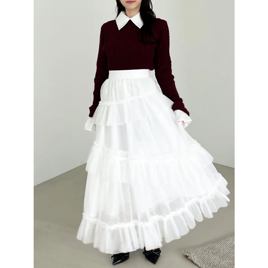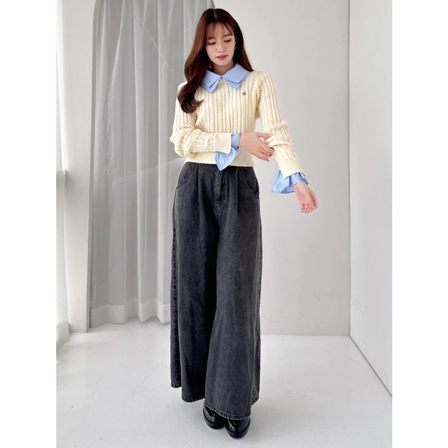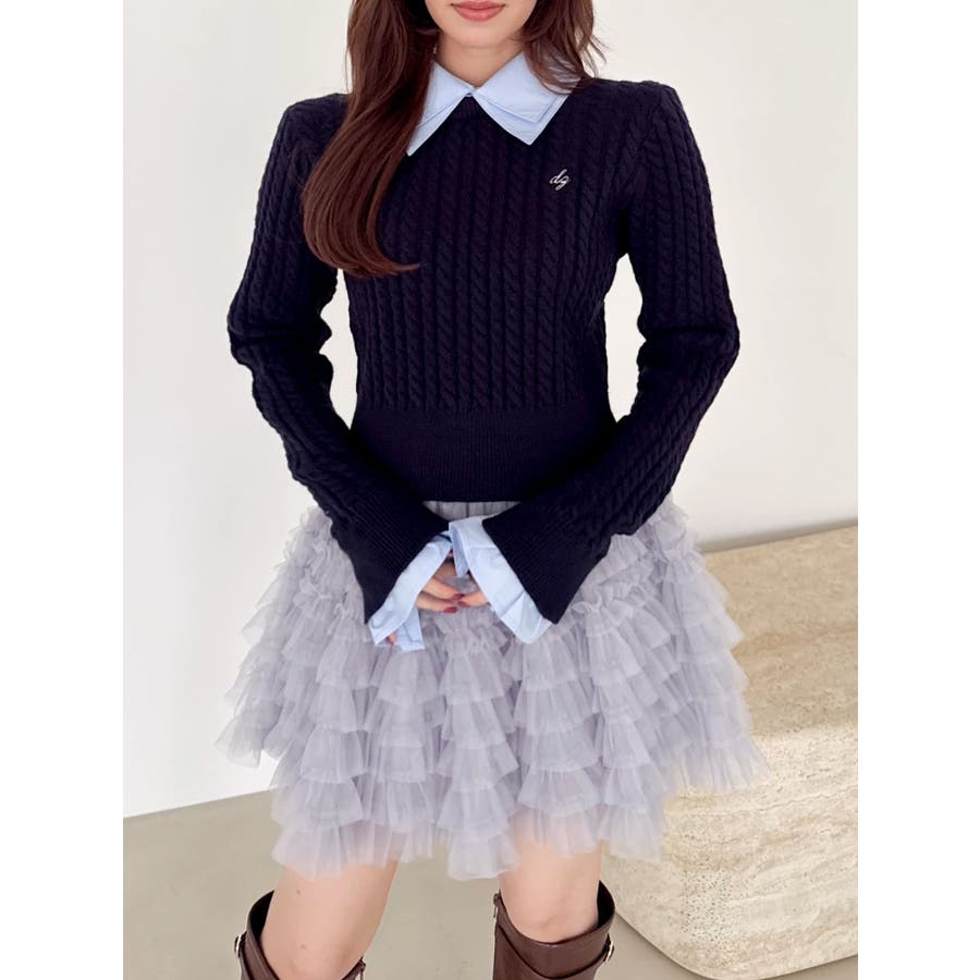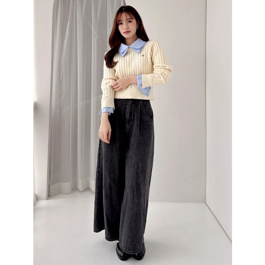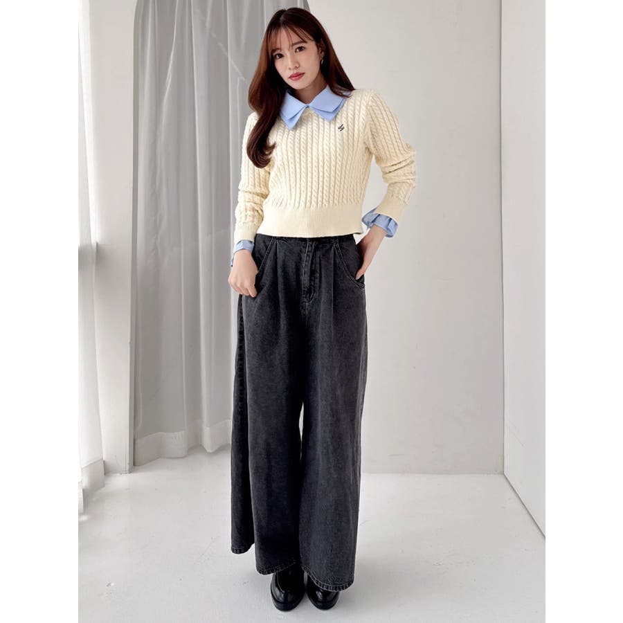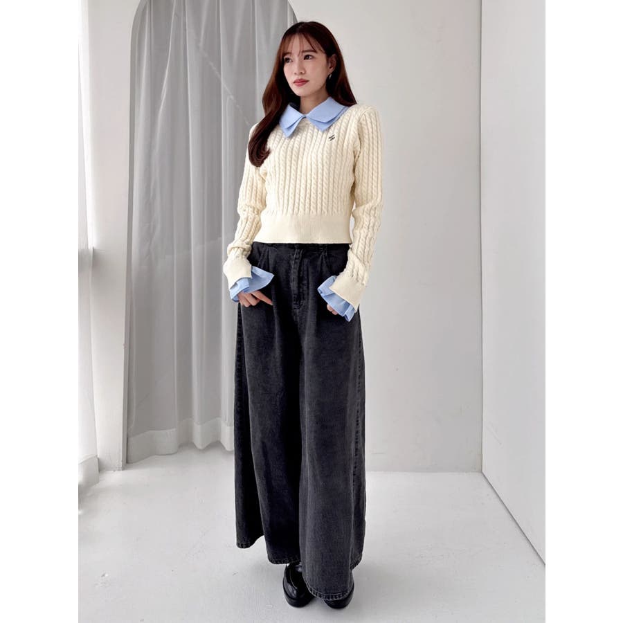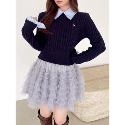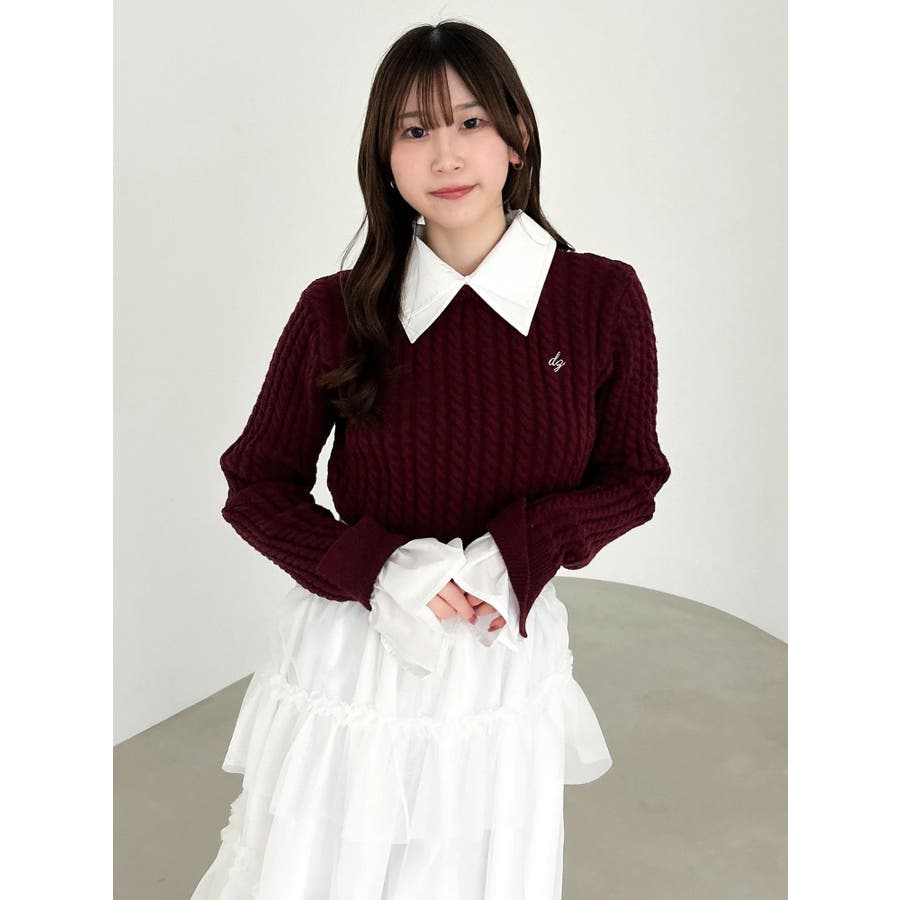 【アイテム】配色異素材ドッキングのケーブルニットプルオーバー。襟とカフスにはシャツ生地を使用し、トレンドの重ね着風のデザインで、一枚でもサマになるアイテムです。コンパクトなシルエットとケーブル編みの立体感が女性らしい印象を引き立て、胸元の刺繍ロゴがさりげないアクセントに。ニット部分は柔らかく伸縮性があり、着心地も抜群です。 【スタイリング】ベーシックなデザインで着回し力の高い一枚です。ボトムにワイドパンツや台形ミニスカートを合わせれば、トラッド感のある上品なスタイルに。フレアスカートなどと合わせてフェミニンカジュアルスタイルに仕上げます。 ---------------------------------------------------- 気になるアイテムはお気に入り登録がおすすめ 入荷情報やラスト1点、お得なプライスダウンの情報をいち早くお届け! ぜひご登録ください◎ ---------------------------------------------------- ※実際にお届けする商品と仕様やサイズが異なる場合がございます。 また生産の都合上、お届け時期が前後する場合がございます。 【商品特徴】透け感:なし伸縮性:あり生地の厚さ:厚手サイズ感:普通裏地:なしポケット:なし