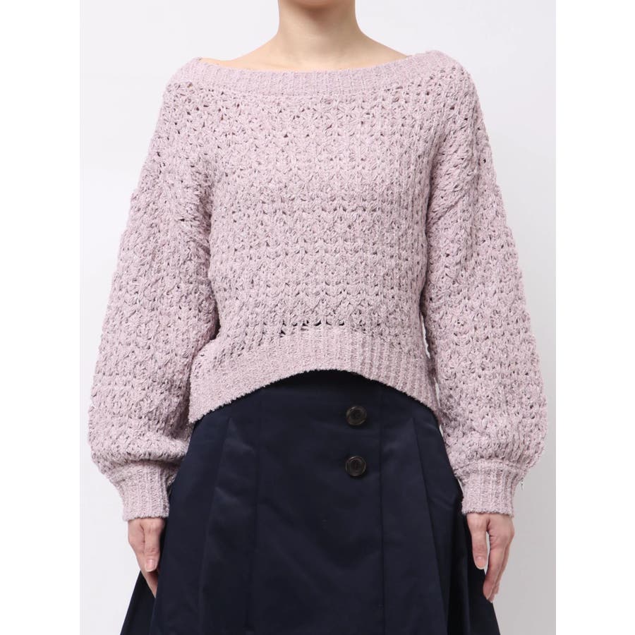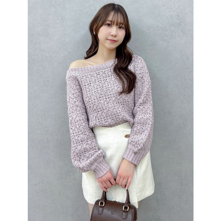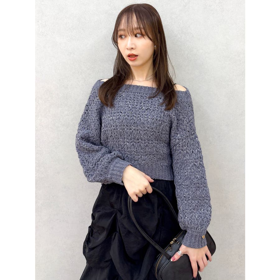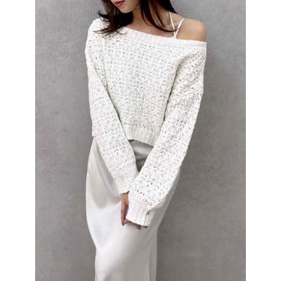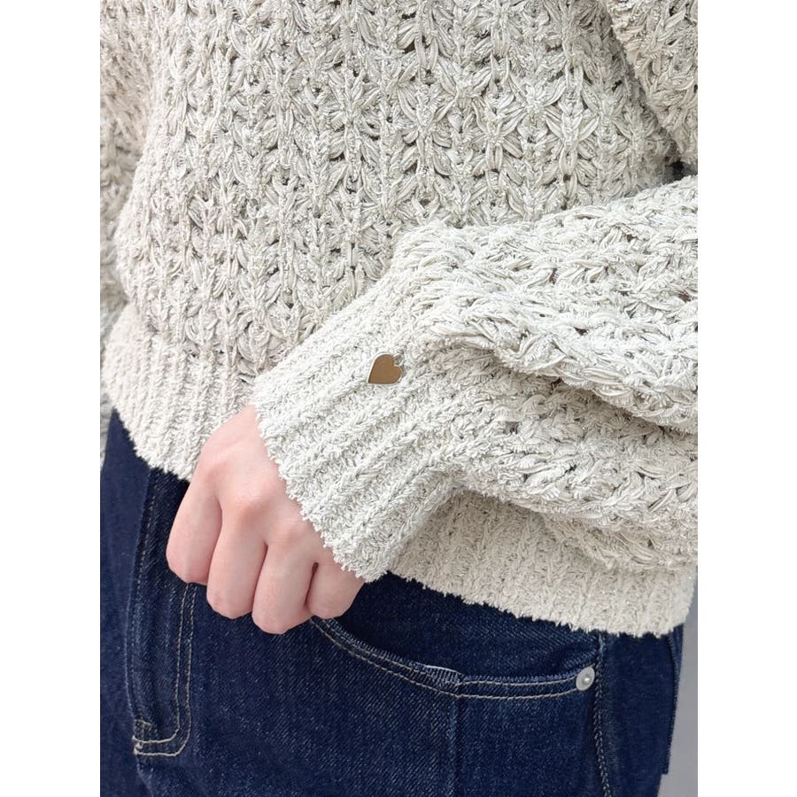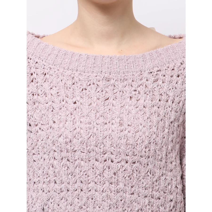 【商品】ざっくり編みの軽やかなニットにラメ糸を編み立てたリラクシーニット。背中にあしらったバックリボンディテールが、後ろ姿にさりげないフェミニンさを添えながら、リボンの調節でオン、オフ、ワンショルの3WAYが可能。片袖口にはハートチャームを施すことでアクセサリーをつけているような揺れ感で女性らしさを一層します。 【スタイリング】ナローシルエットスカート合わせで、ゆるさときちんと感を両立した大人レディスタイルに。サテンキャミワンピースにレイヤードすれば、艶感が引き立つ女性らしい着こなしに。パンツ合わせで、リラクシーなヘルシースタイルも楽しめます。 ※実際にお届けする商品と仕様やサイズが異なる場合がございます。また生産の都合上、お届け時期が前後する場合がございます。【商品特徴】透け感:あり伸縮性:あり生地の厚さ:普通サイズ感:ゆったり裏地:なしポケット:なし
