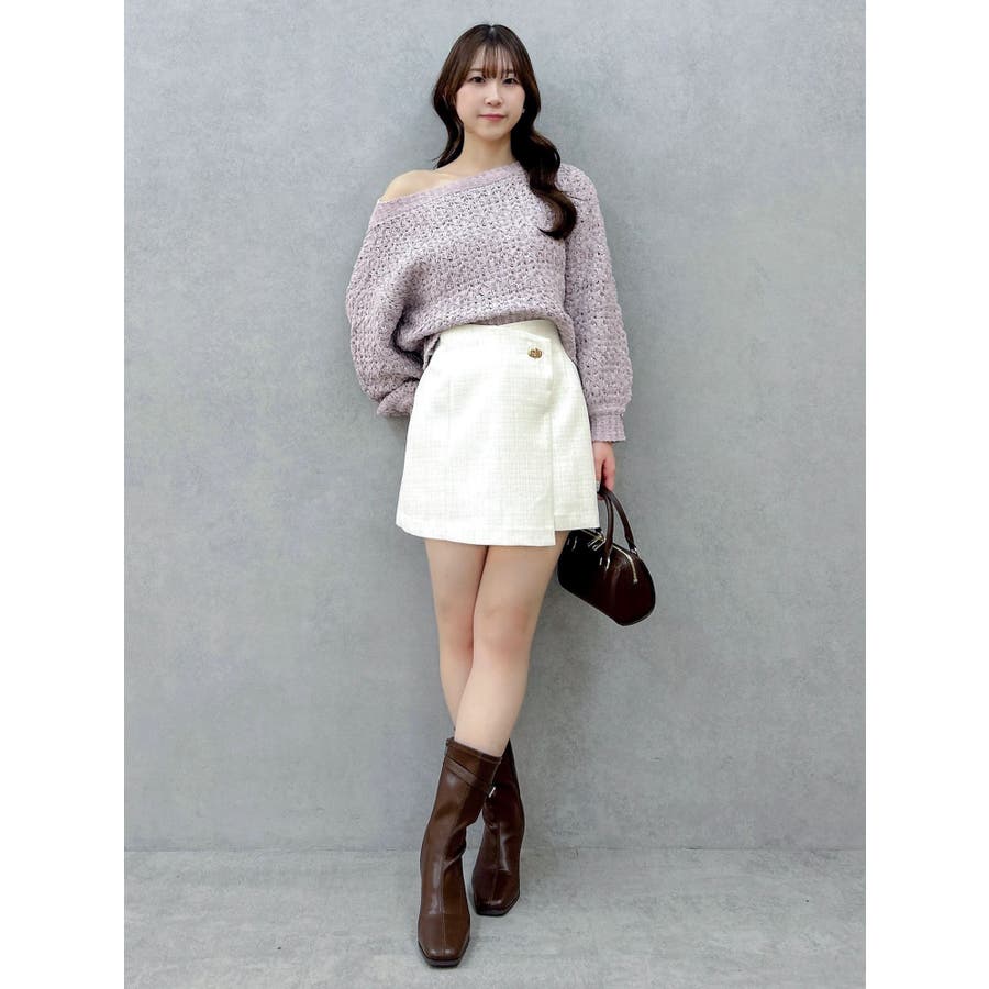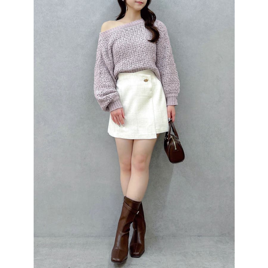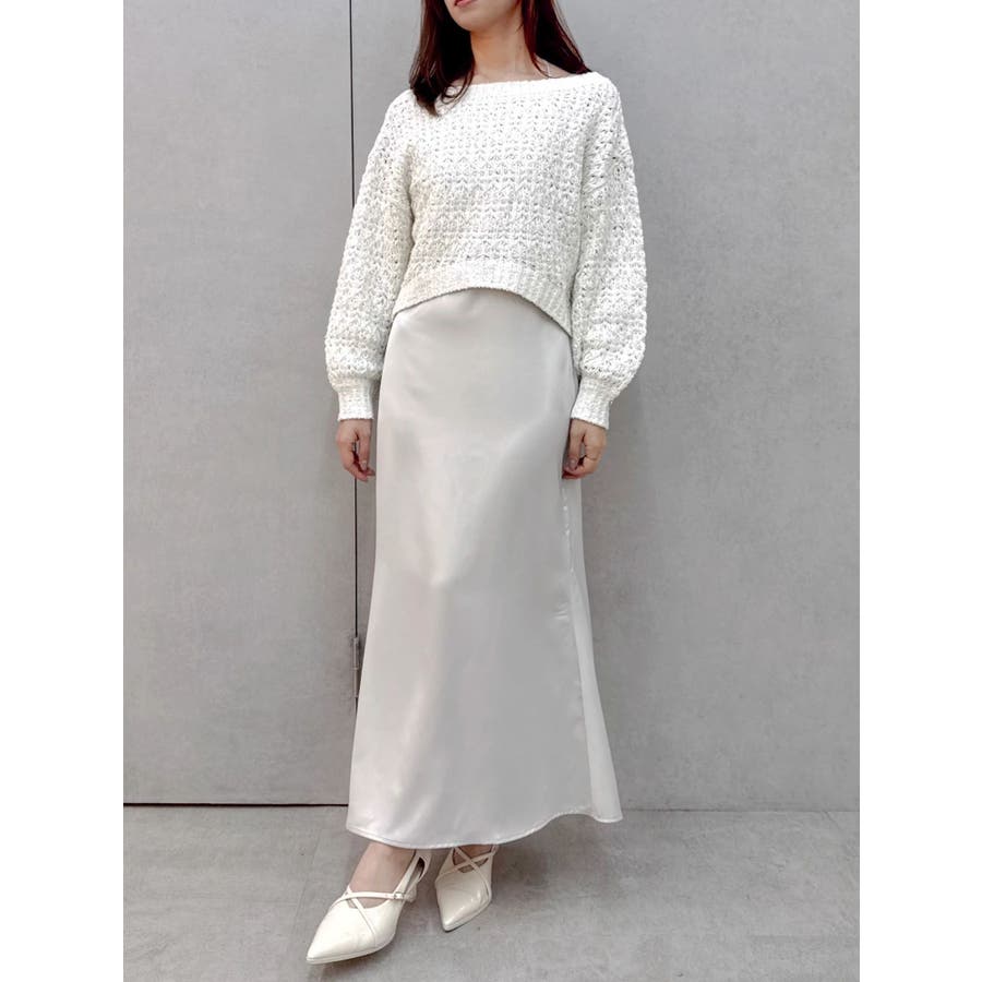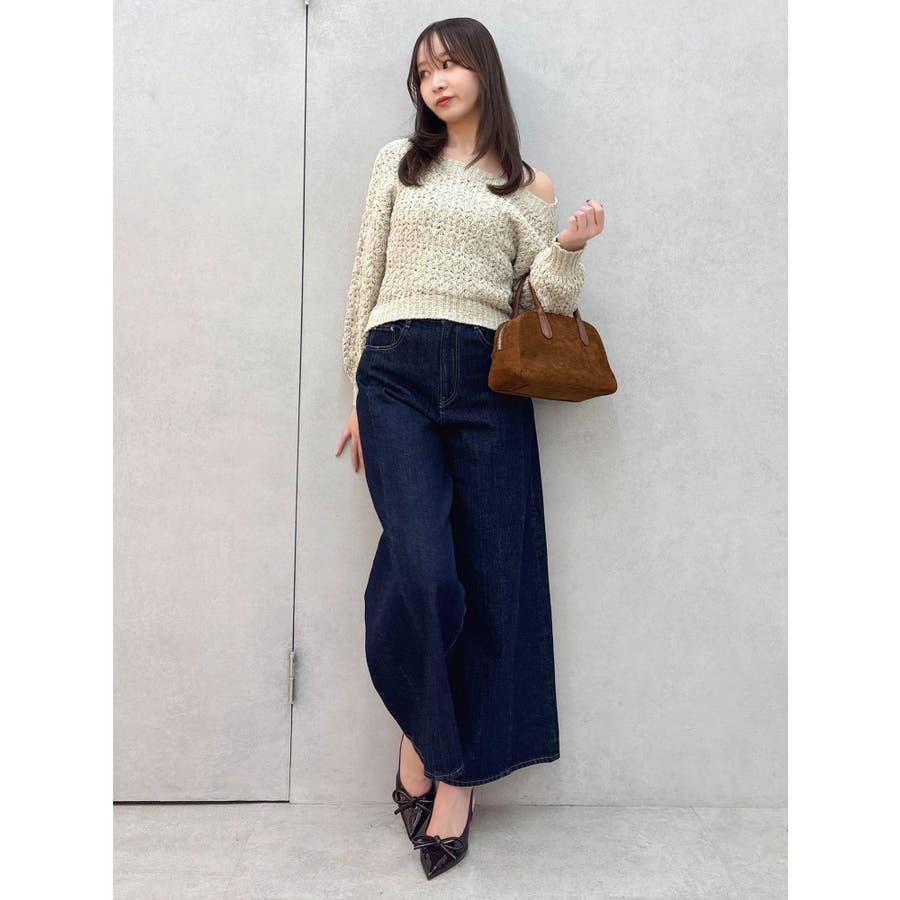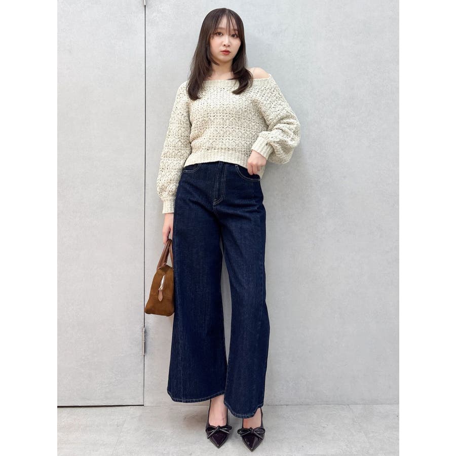 【商品】ざっくり編みの軽やかなニットにラメ糸を編み立てたリラクシーニット。背中にあしらったバックリボンディテールが、後ろ姿にさりげないフェミニンさを添えながら、リボンの調節でオン、オフ、ワンショルの3WAYが可能。片袖口にはハートチャームを施すことでアクセサリーをつけているような揺れ感で女性らしさを一層します。 【スタイリング】ナローシルエットスカート合わせで、ゆるさときちんと感を両立した大人レディスタイルに。サテンキャミワンピースにレイヤードすれば、艶感が引き立つ女性らしい着こなしに。パンツ合わせで、リラクシーなヘルシースタイルも楽しめます。 ※実際にお届けする商品と仕様やサイズが異なる場合がございます。また生産の都合上、お届け時期が前後する場合がございます。【商品特徴】透け感:あり伸縮性:あり生地の厚さ:普通サイズ感:ゆったり裏地:なしポケット:なし