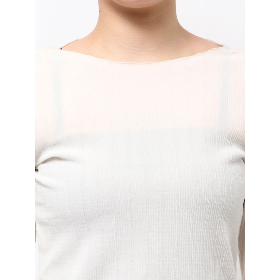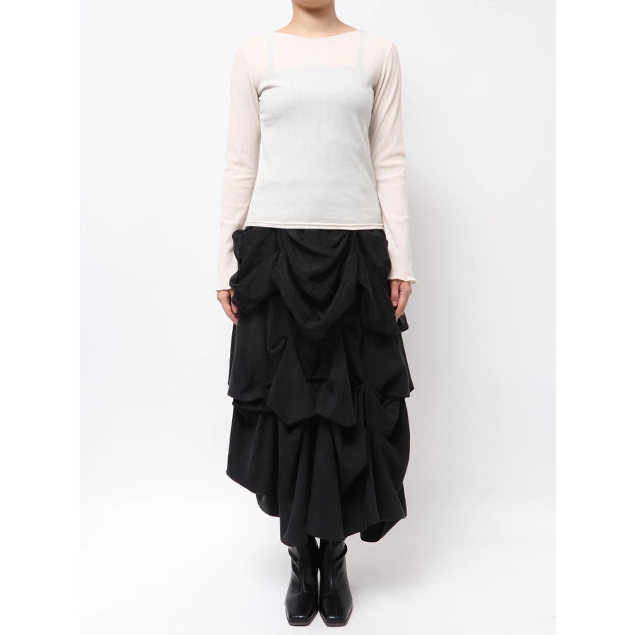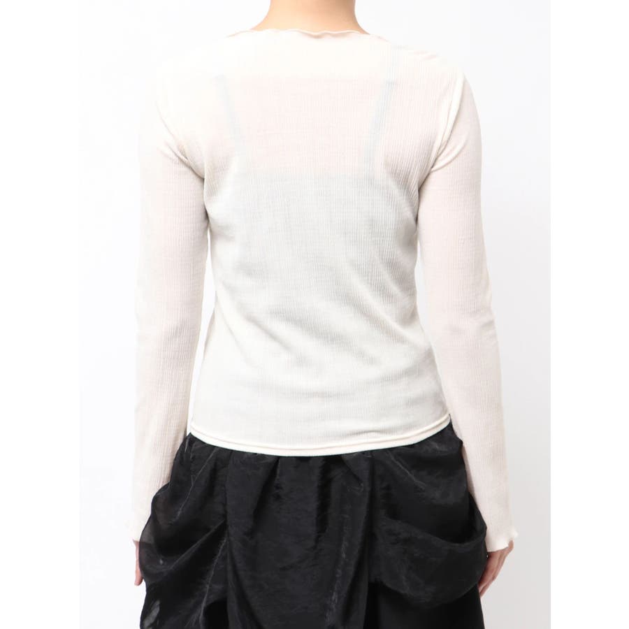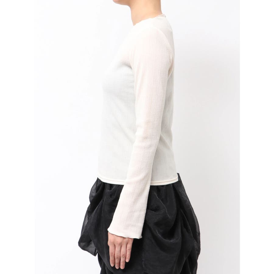 【商品】ほどよい透け感と上品な微光沢が魅力の、シアーベロア素材を使用したフェミニントップス。袖口にはギャザーを施し、1枚でもデザイン性のある仕上がりに。ストレッチ性があり、被りで着脱できるイージー仕様。インナー付きで透け感を気にせず着用でき、春夏のレイヤードスタイルにぴったりなアイテムです。【スタイリング】キャミワンピースのインナーとして合わせれば、透け感と光沢が映えるフェミニンスタイルに。ビスチェやベストとレイヤードすれば、トレンド感のある着こなしが完成。デニムと合わせてカジュアルダウンしても、素材の華やかさでこなれ感を演出。【商品特徴】透け感:あり伸縮性:ややあり生地の厚さ:薄手サイズ感:普通裏地:なしポケット:なし