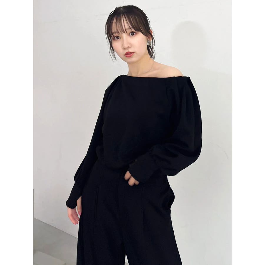 【吉田朱里】タックスリーブオフショルスウェット ※BLACK WEB限定カラー