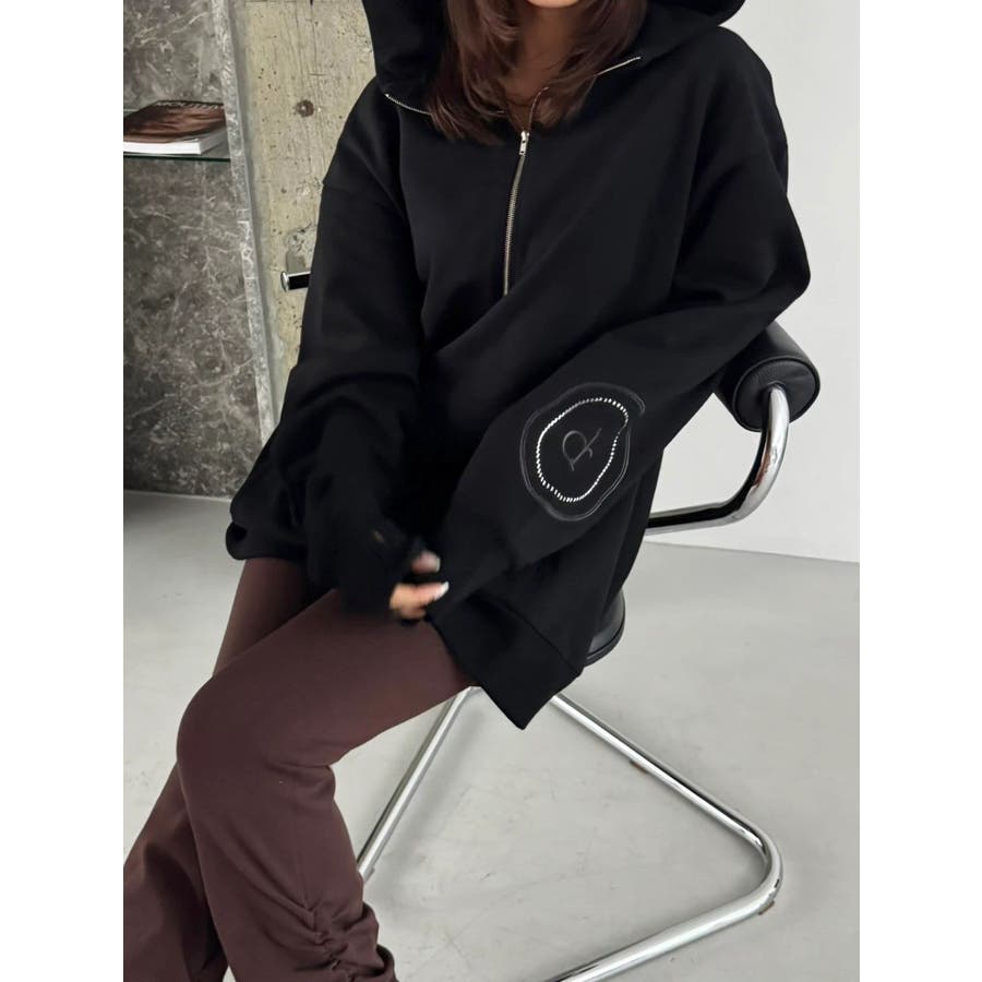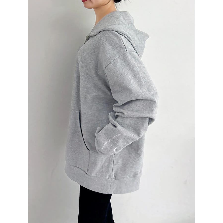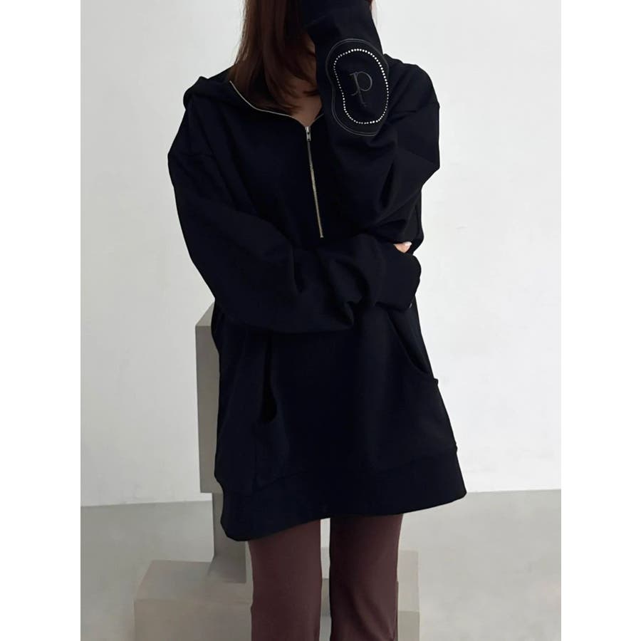 - 吉田朱里 supportted by dazzlin(ダズリン) - akarin made.w/dazzlin アイテム第2弾 10.24 fri 12:00 PREORDER START! 【アイテム】袖口に施された、オリジナルロゴのきらめくラインストーン刺繍が目を惹くオーバーサイズフーディ。ベーシックな中にも程よいアクセントを効かせた一枚です。深めのハーフジップと大きめのフロントポケットが、こなれたカジュアル感を演出。ゆったりとしたシルエットで抜け感を出しつつ、ユニセックスでも着用OK。どんなテイストにも合わせやすく、着回し力抜群の万能トップスです。 【スタイリング】さらっと羽織るだけで旬なリラックス感をプラス。ロングスカートと合わせれば、大人っぽくフェミニンなカジュアルスタイルに。ミニスカートやショートパンツを合わせると、バランス良くまとまり、辛口ガーリーな印象に仕上がります。足元はスニーカーやブーツで、シーズンに合わせた着こなしを楽しんで。 ---------------------------------------------------- 気になるアイテムはお気に入り登録がおすすめ 入荷情報やラスト1点、お得なプライスダウンの情報をいち早くお届け! ぜひご登録ください◎ ---------------------------------------------------- ※実際にお届けする商品と仕様やサイズが異なる場合がございます。 また生産の都合上、お届け時期が前後する場合がございます。【商品特徴】透け感:なし伸縮性:ややあり生地の厚さ:普通サイズ感:ゆったり裏地:なしポケット:あり(前)
