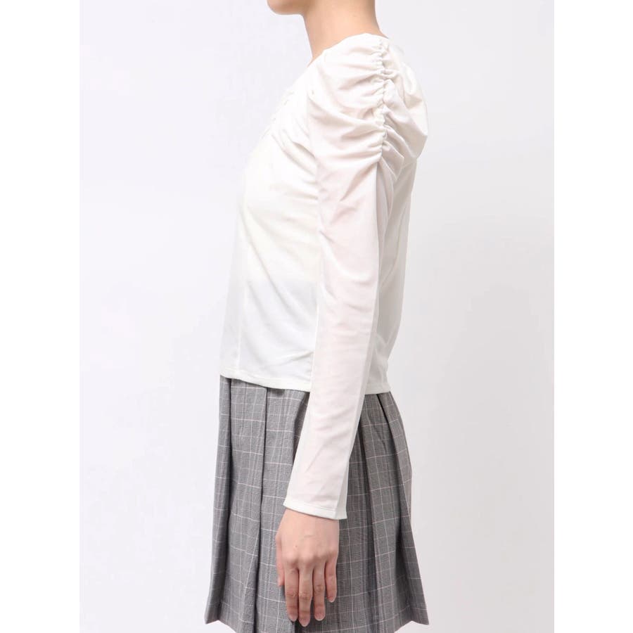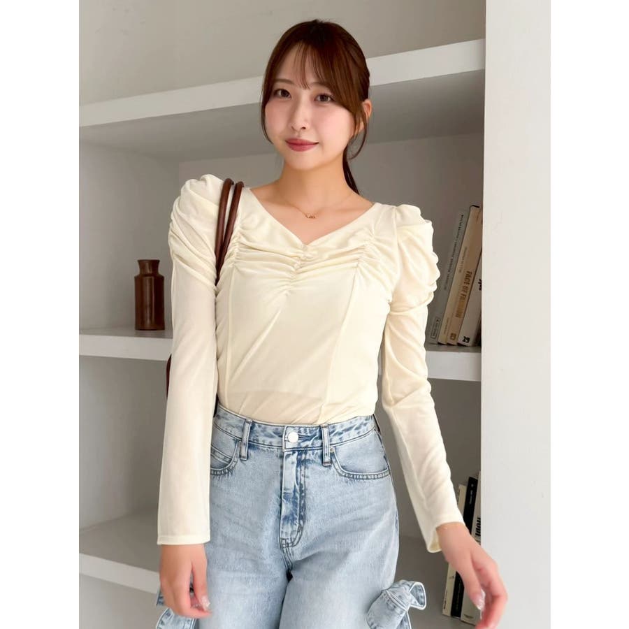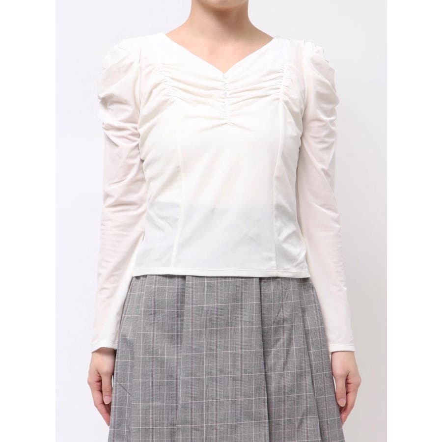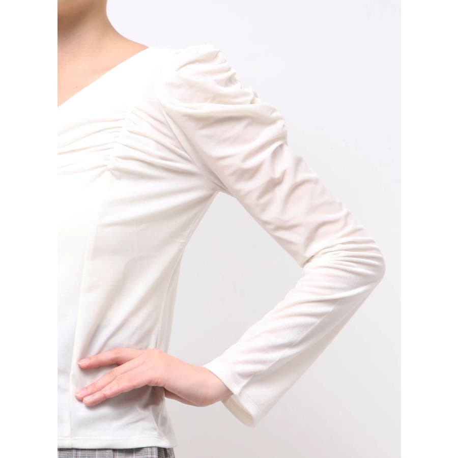 【商品】 マカロンのような優しいカラーでほんのりとした光沢が上品に映える、シアーベロアを使用。繊細に寄せたギャザーが立体感を生み、女性らしいニュアンスを引き立てます。襟元は品の良いハートネックとシアー感のある生地が抜け感をプラス。程よくシンプルなデザインでデイリーに使いやすい1枚です。 【スタイリング】ミニボトムスやフレアスカートで、上品さと可愛さのバランスが取れたレディスタイルはもちろん、 デニムパンツと合わせて、素材感を引き立てる大人っぽくヘルシーなコーデにも高相性です。 ※実際にお届けする商品と仕様やサイズが異なる場合がございます。また生産の都合上、お届け時期が前後する場合がございます。【商品特徴】透け感:なし伸縮性:あり生地の厚さ:薄手サイズ感:普通裏地:なしポケット:なし