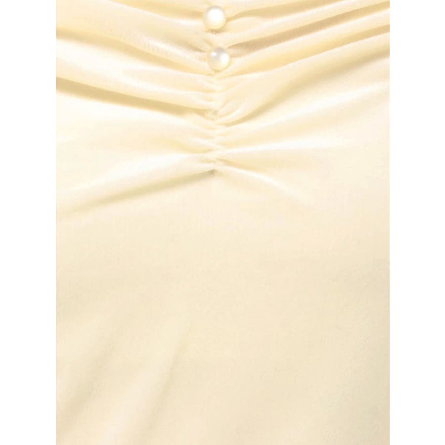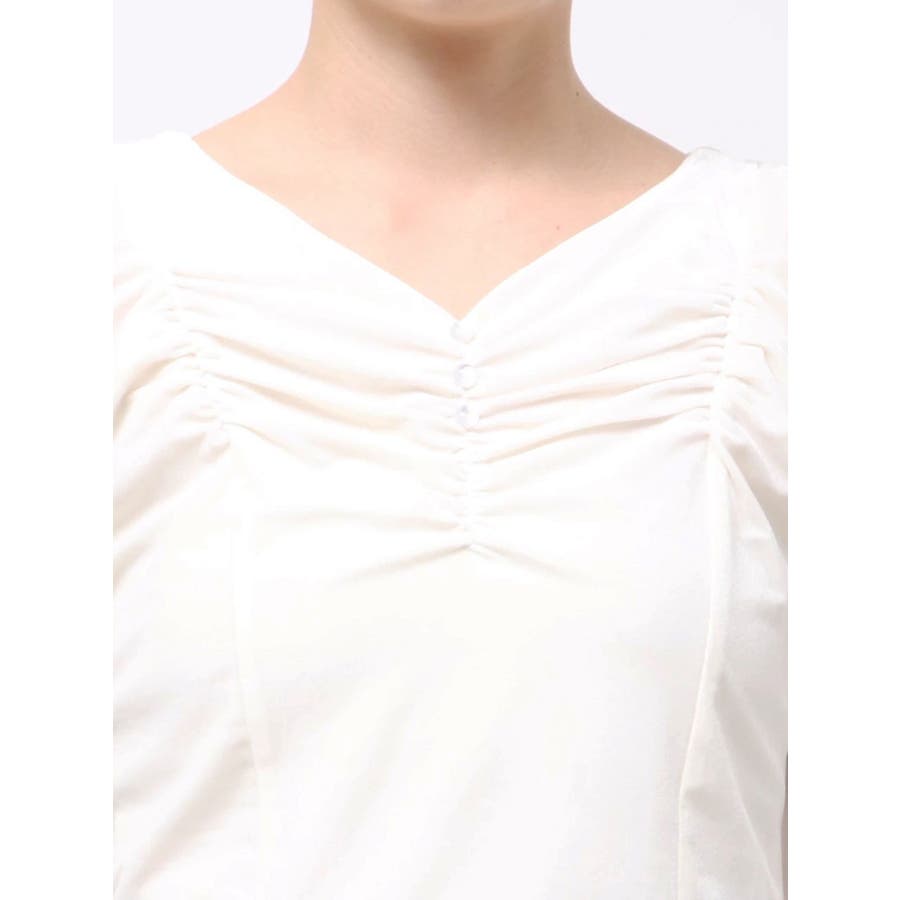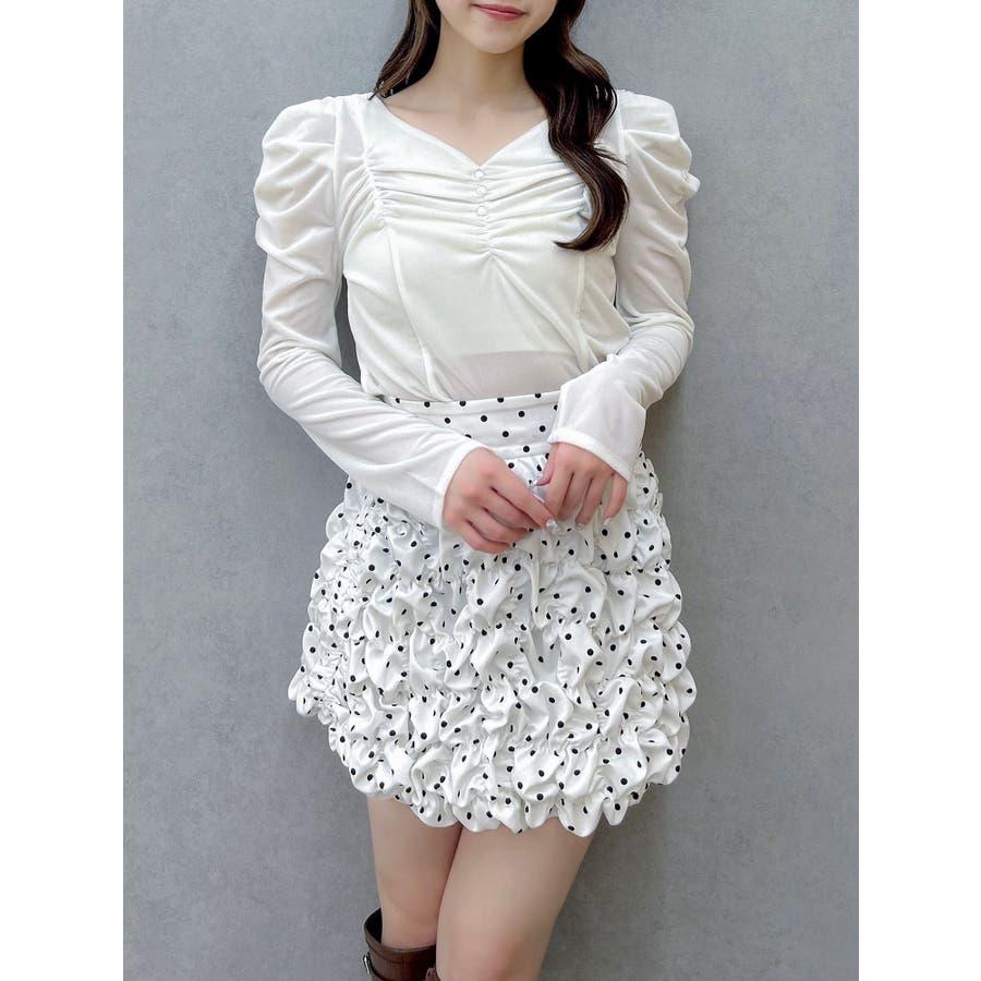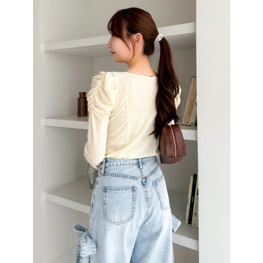 【商品】 マカロンのような優しいカラーでほんのりとした光沢が上品に映える、シアーベロアを使用。繊細に寄せたギャザーが立体感を生み、女性らしいニュアンスを引き立てます。襟元は品の良いハートネックとシアー感のある生地が抜け感をプラス。程よくシンプルなデザインでデイリーに使いやすい1枚です。 【スタイリング】ミニボトムスやフレアスカートで、上品さと可愛さのバランスが取れたレディスタイルはもちろん、 デニムパンツと合わせて、素材感を引き立てる大人っぽくヘルシーなコーデにも高相性です。 ※実際にお届けする商品と仕様やサイズが異なる場合がございます。また生産の都合上、お届け時期が前後する場合がございます。【商品特徴】透け感:なし伸縮性:あり生地の厚さ:薄手サイズ感:普通裏地:なしポケット:なし