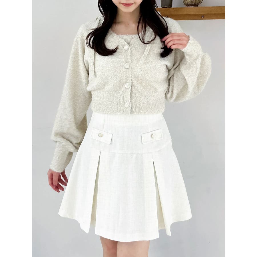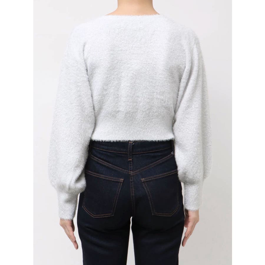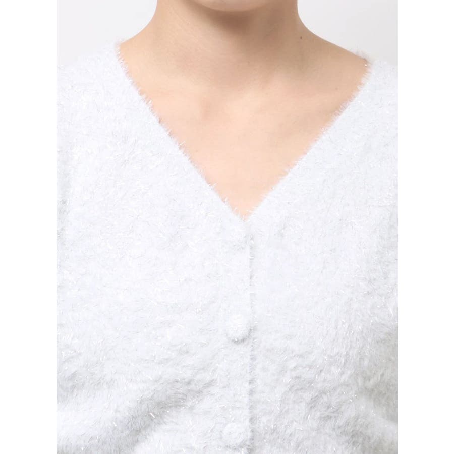 ミニシャギーラメニットカーデトップス