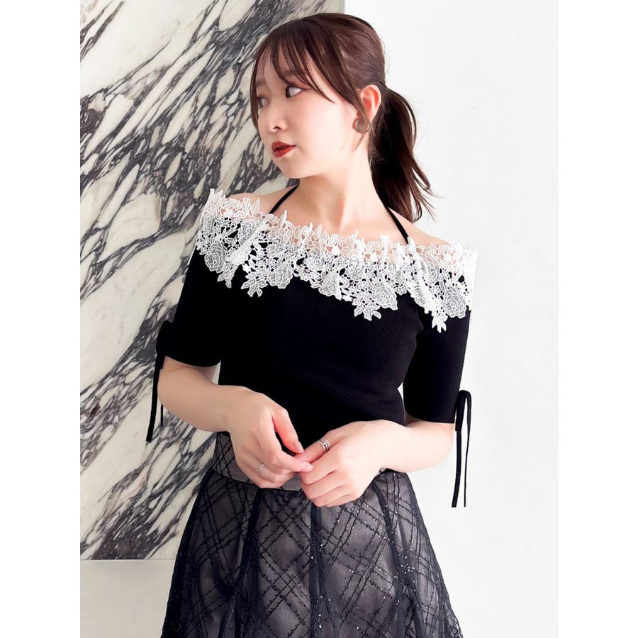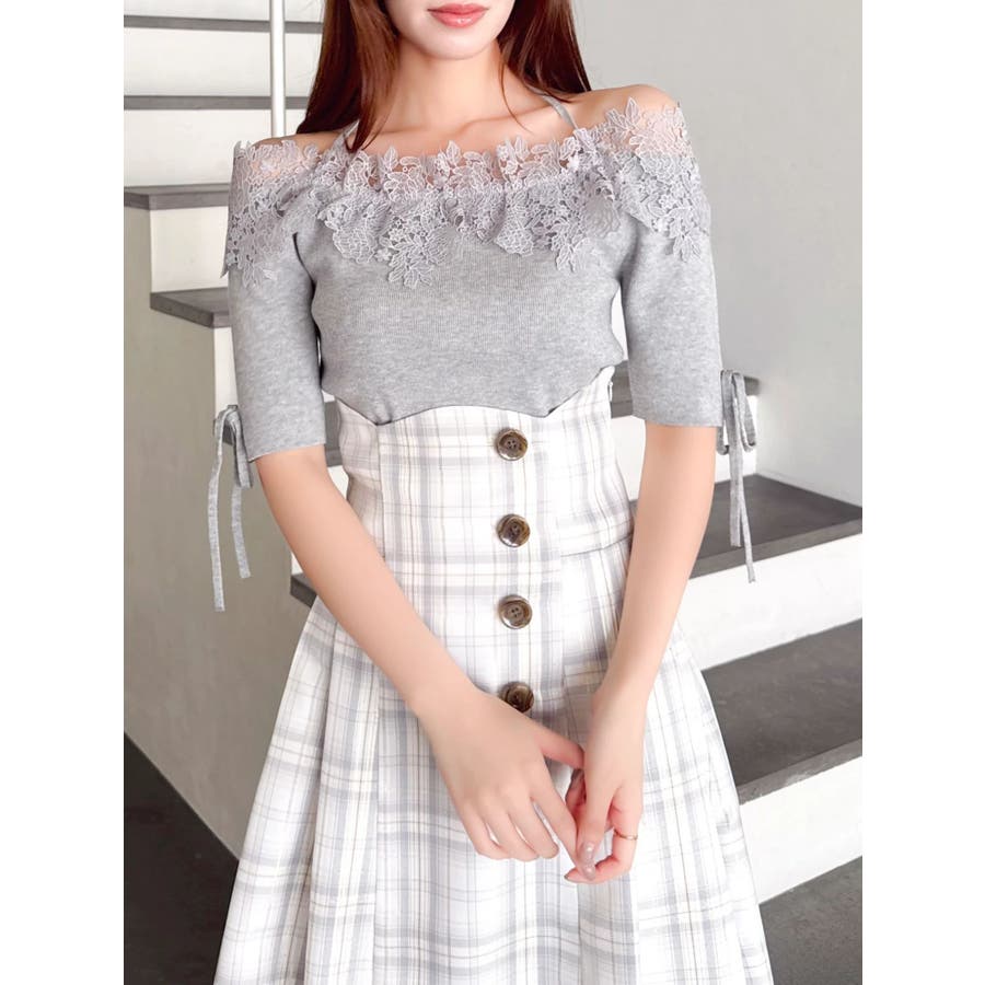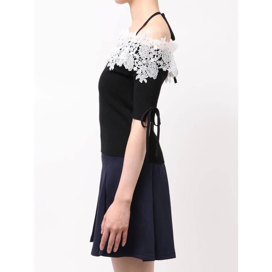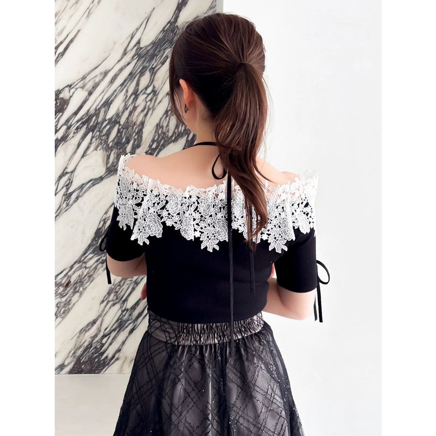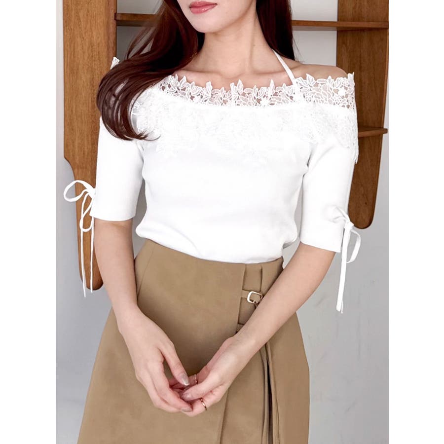【商品】繊細なレースをオフショルデザインにドッキングした、女性らしさが引き立つニットトップス。デコルテを美しく見せるオフショルラインに、レースの透け感が軽やかで上品な印象を演出します。フロントにはストリングデザインを施し、さりげないアクセントとトレンド感をプラス。程よくフィットするニット素材がボディラインをきれいに見せつつ、華奢見えも叶える一枚です。 【スタイリング】 フェミニンなフレアスカートやレーススカートと合わせると、女性らしさが際立つスタイリングに。デニムやワイドパンツと合わせて、甘さを程よく抑えたカジュアルミックスコーデもおすすめです。ハイウエストボトムと合わせることで、オフショルデザインがより映え、バランスの良いスタイルが完成します。※実際にお届けする商品と仕様やサイズが異なる場合がございます。また生産の都合上、お届け時期が前後する場合がございます。【商品特徴】透け感:なし伸縮性:あり生地の厚さ:薄手サイズ感:普通裏地:なしポケット:なし