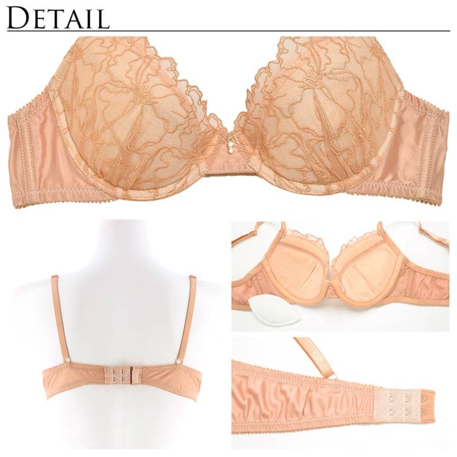 3/4カップ/ワイヤー:有/ホック:バック2段3列、パッド:内蔵パッド:無/付属パッド:有(レモンパッド)、ストラップ:取り外し:不可(調節可)/部品:金属(コーティング:有)