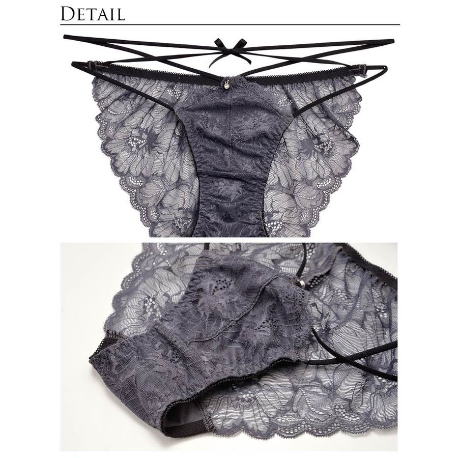 ショーツはバック透けレース仕様で、Wラインのストリング使いが魅力的なデザインです。