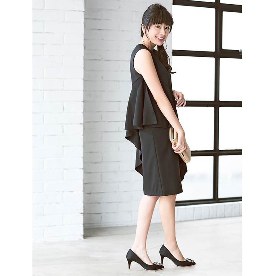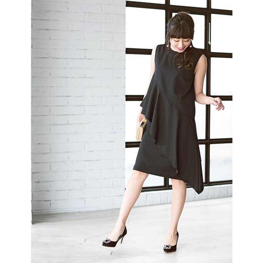 アシンメトリーなドレープで目線を上に持っていくことでスタイルアップ効果が。