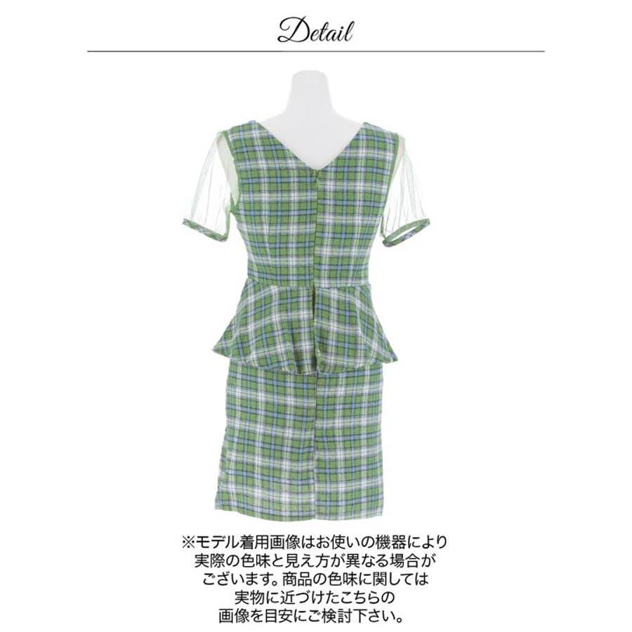 チェック柄ツイストペプラムシアー半袖タイトミニ丈キャバドレス