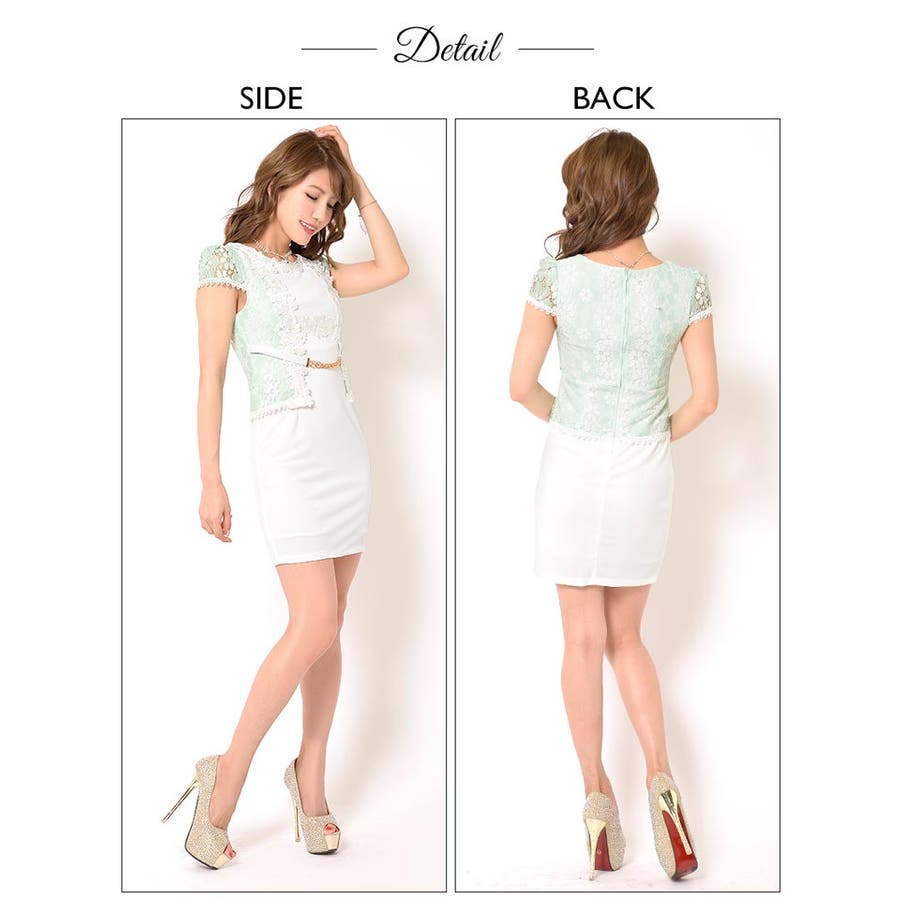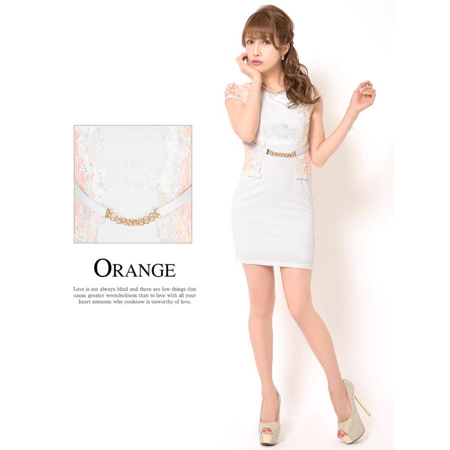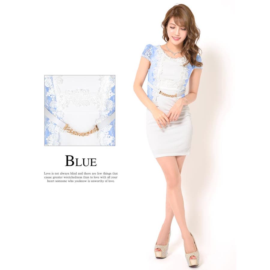 ドレス キャバチェーンベルトモチーフ付レース袖付きタイトミニドレス