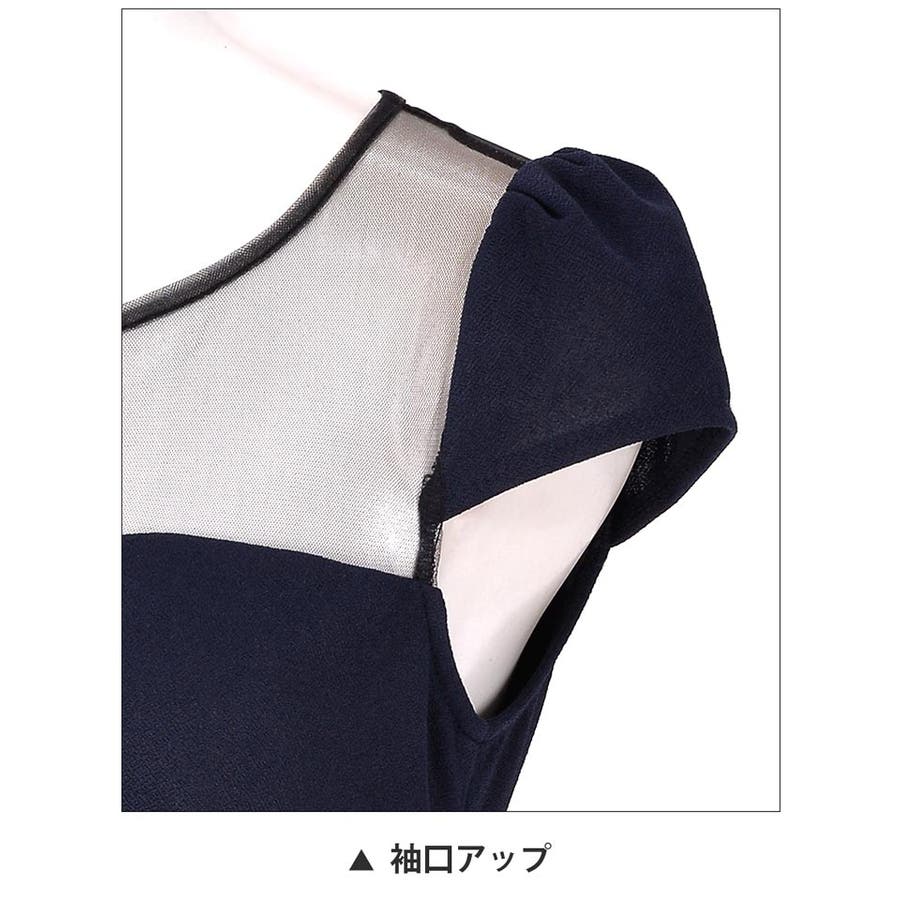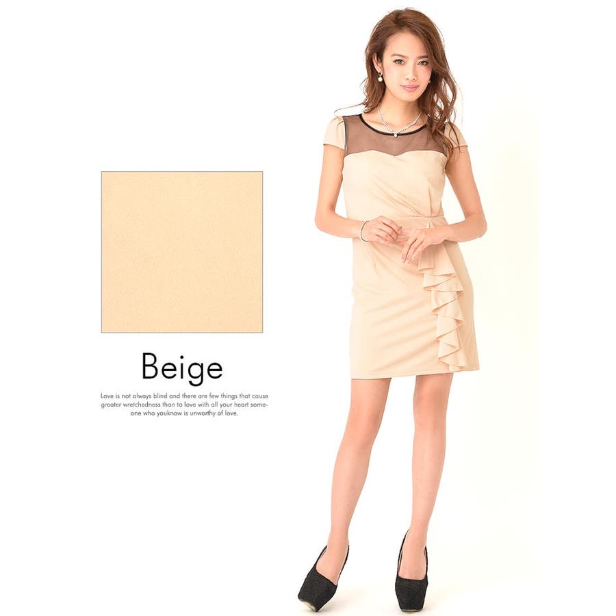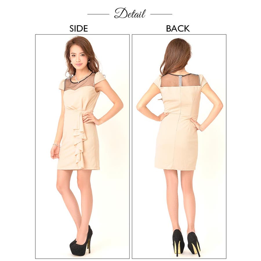 デコルテ部分がメッシュ素材になっていてデコルテを透け魅せできるデザインのタイトミニドレス。