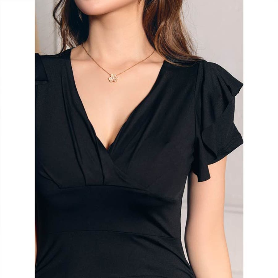 デコルテに上品なパールとビジューを施し、胸元を煌びやかにさせる盛りドレス。ノンカラーなのでコーディネートもしやすい一着です。バストには盛りパッドもしっかり入っているので谷間ホールから胸元も上品にアピール出来ます♪