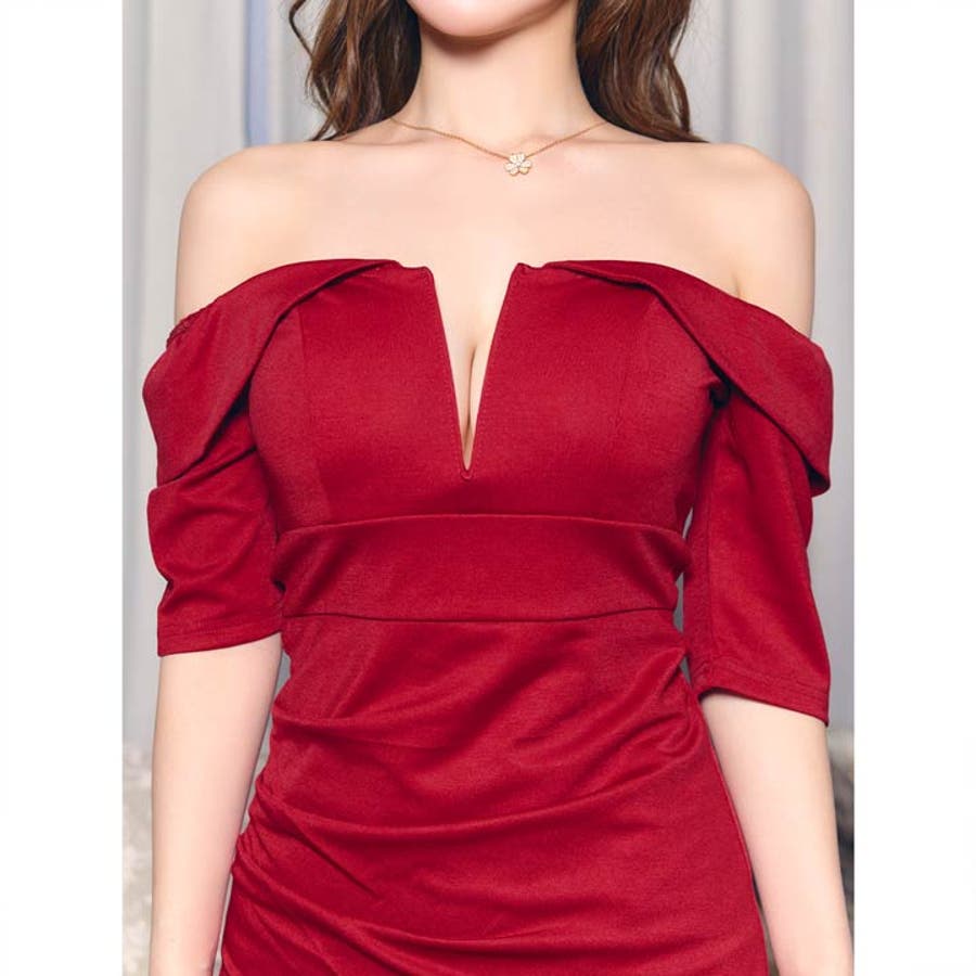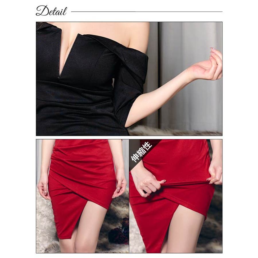 プチプラなのに高級感あふれる大人タイトドレス。深めのVネックから谷間魅せ&濃色ワンカラーでさらにお色気UP。長さが違うアシンメトリーデザインで美脚効果も◎