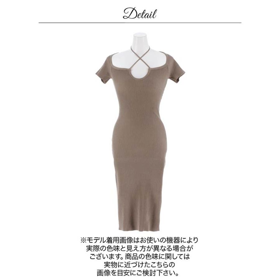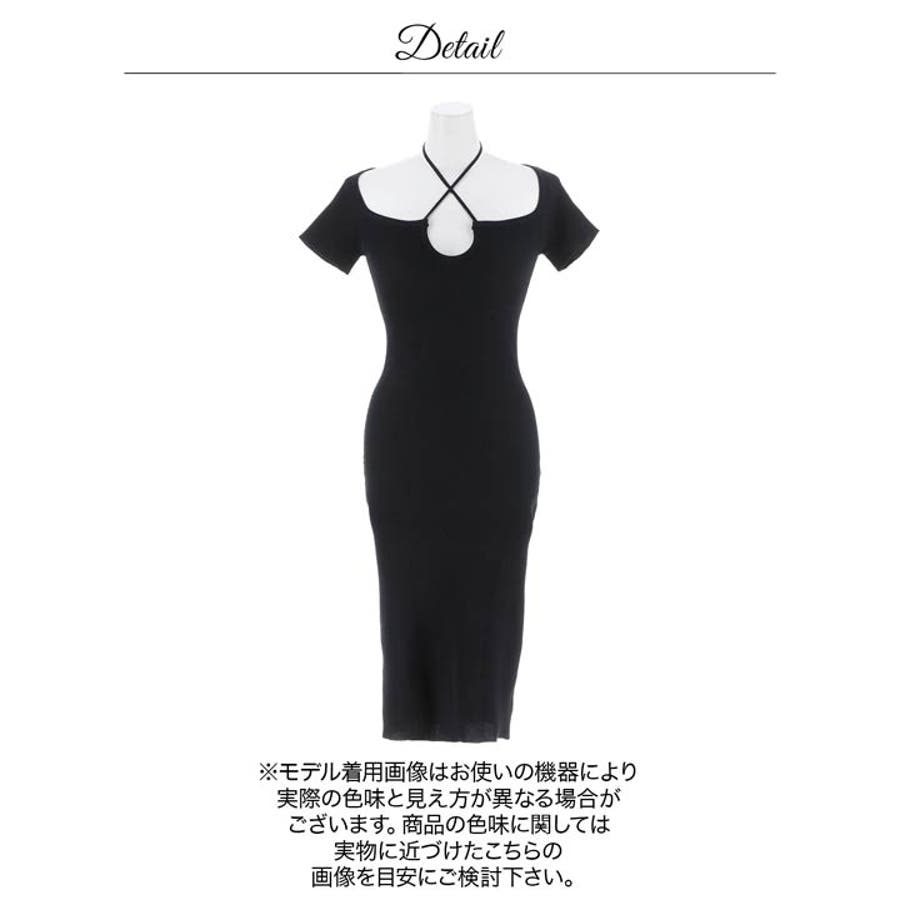 デコルテのクロスデザインがセクシーな肌魅せを演出♪シンプルながらも1枚で着映えするリブニットワンピース。フィット感のあるタイトなシルエットで体のラインを女性らしくキレイに見せてくれます!伸縮性があり着心地が楽ちんなのもポイントです◎