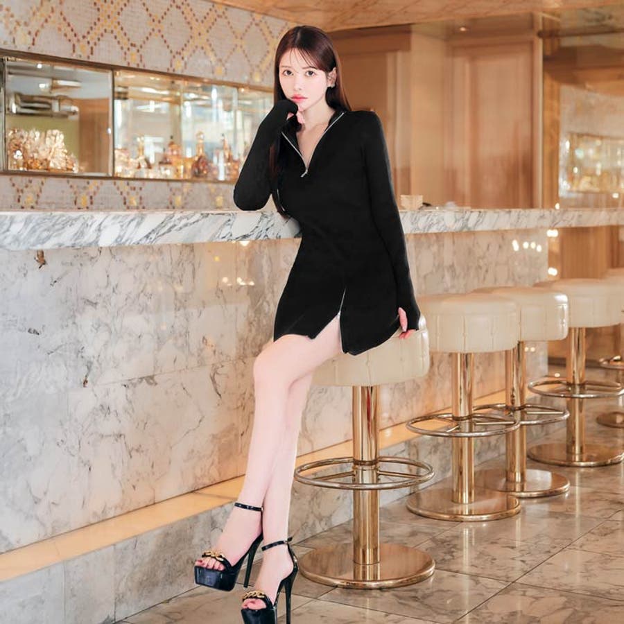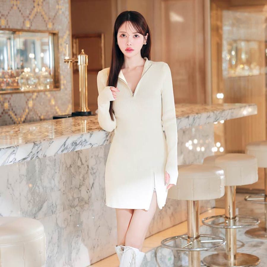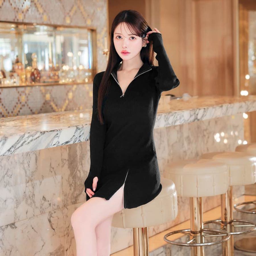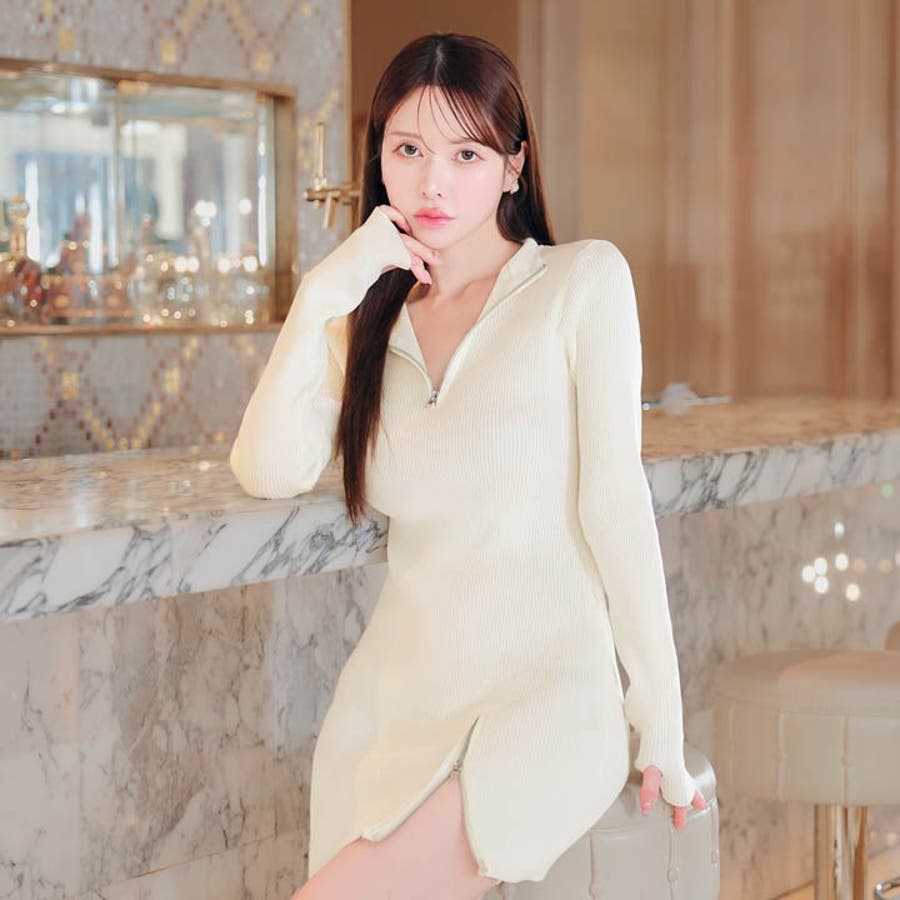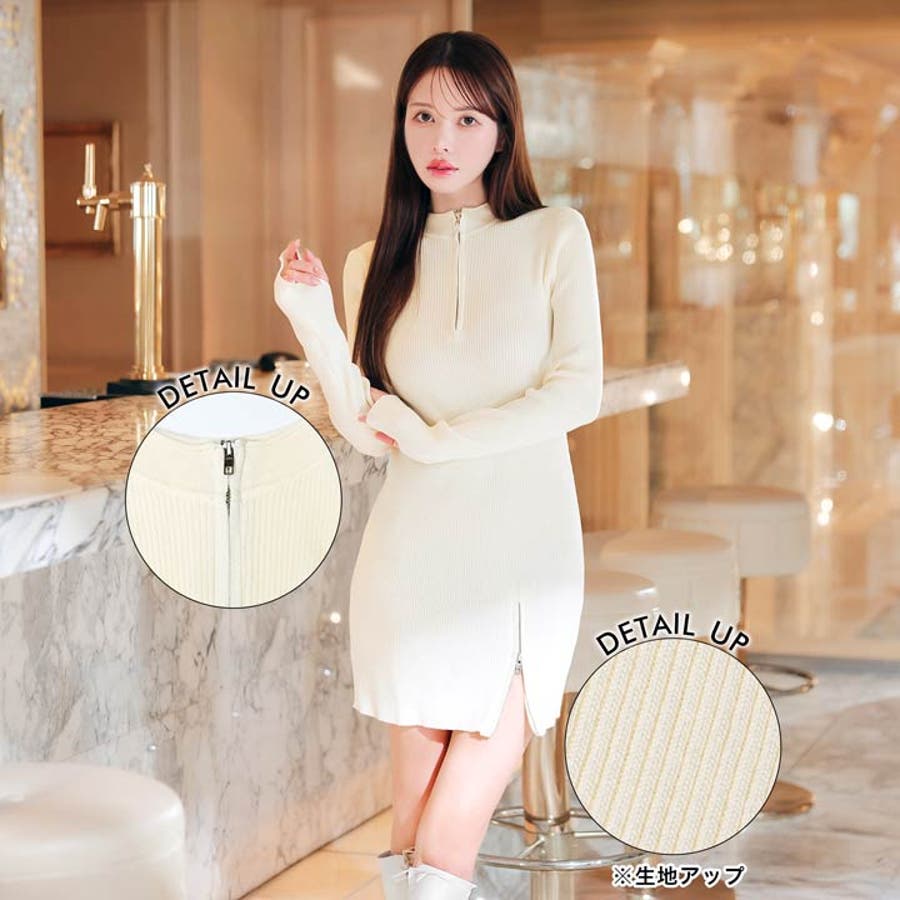 フィット感のあるタイトシルエットが女性らしい曲線を際立たせるリブニットワンピース。フロントジップ仕様なので胸元の見せ方やスリットの深さをお好みで調節できちゃいます♪ラウンジワンピとしてはもちろん、デートコーデにもぴったりの1着です!