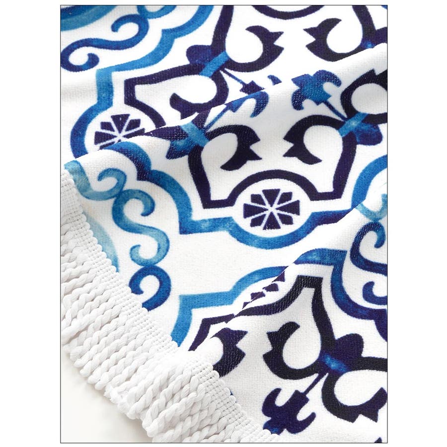 涼しげでオシャレなタイル柄ラウンドタオル。持ってるだけでグッと高級感があふれます。2人で寝転がっても余裕の大きさだからビーチシートとして砂浜に敷いてもゆったり座れます。インテリアとしてソファーやベッドに掛けておくだけでお部屋の印象も華やかに。キャンプやアウトドアでもプライベート空間を作り出し、グッとオシャレな印象に。水着とおそろいで合わせて買うのもおすすめです。