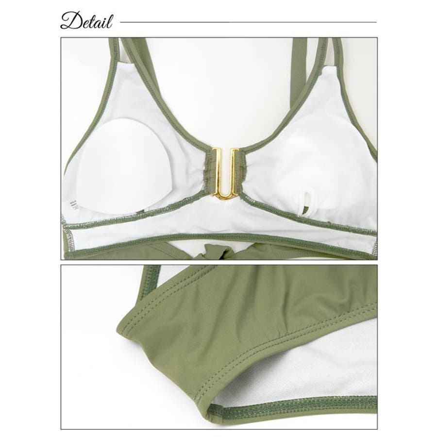 バスト中央でキラリと輝くU字ビジューがアクセントになったビキニ。