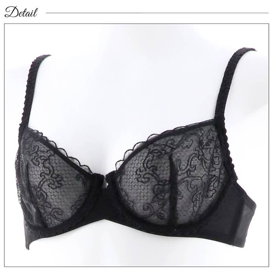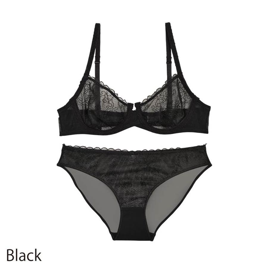 透け感のあるレースがバストを包み、丸みのある自然なバストラインをつくってくれるワイヤー入りのランジェリー・ショーツのセット。