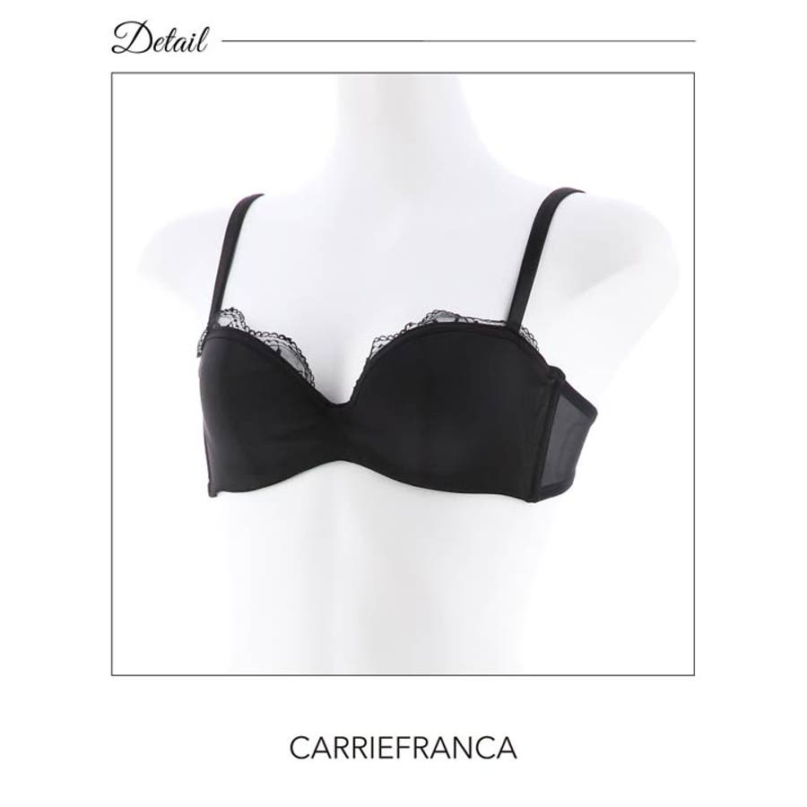 シックなサテン地のカップにチラリと見えるレースが大人の色気を漂わせるランジェリーです。
