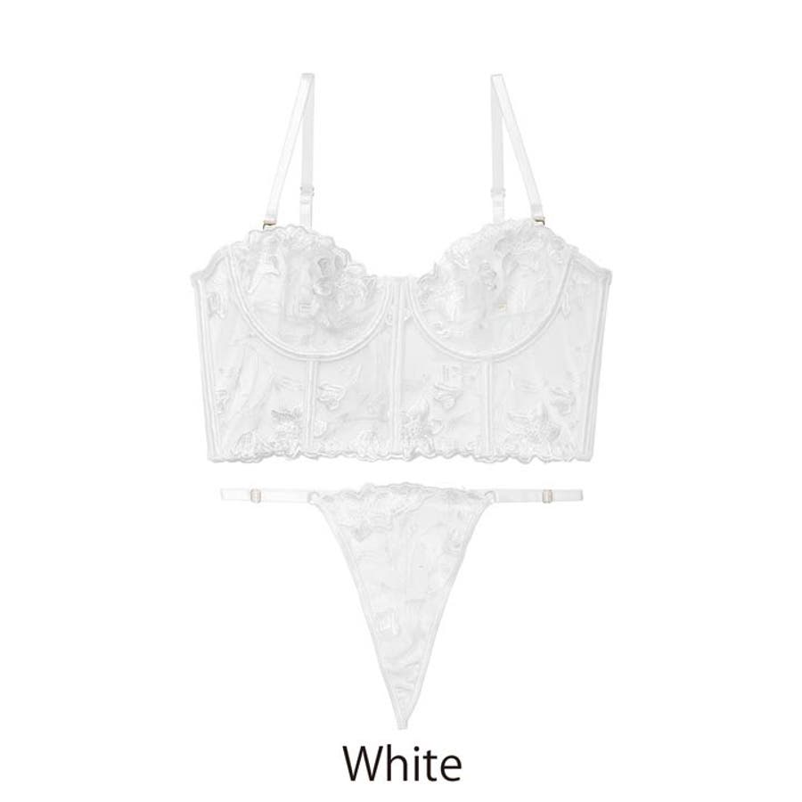 上品な刺繍デザインと全面シースルー素材の肌魅せが女性らしいランジェリー。