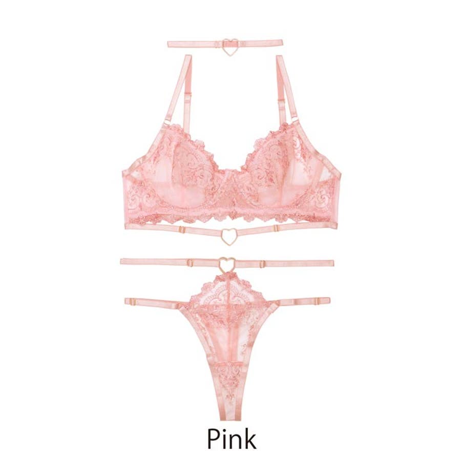曲線を描くアーチ刺繍を施したフェミニンな淡いピンクカラーのランジェリー。