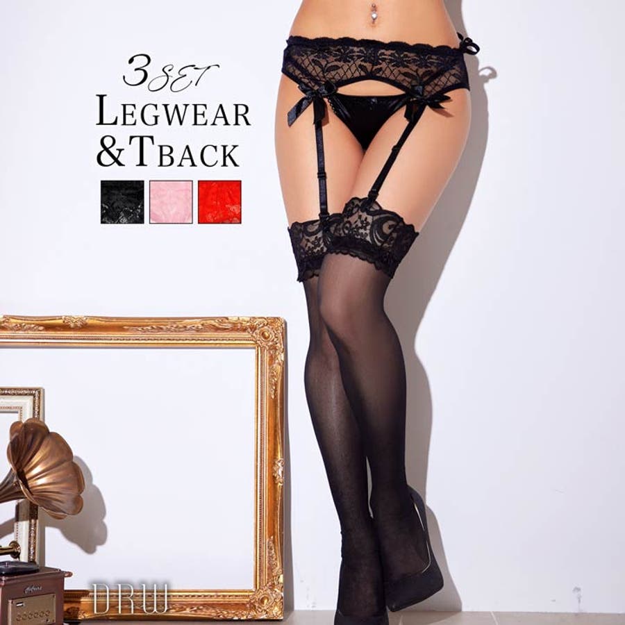 [ガーターベルト、ストッキング、Tバックのセット]