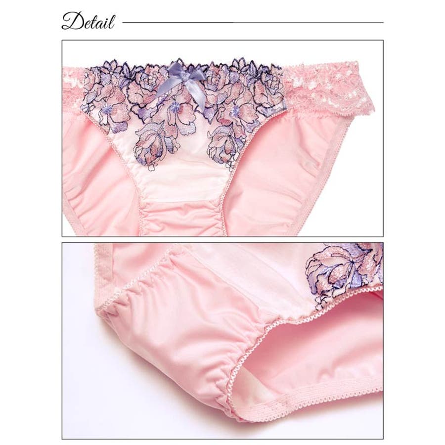 華やかな大ぶりのローズ刺繍と上品にきらめくラメが高級感漂うフェミニンなランジェリー。
