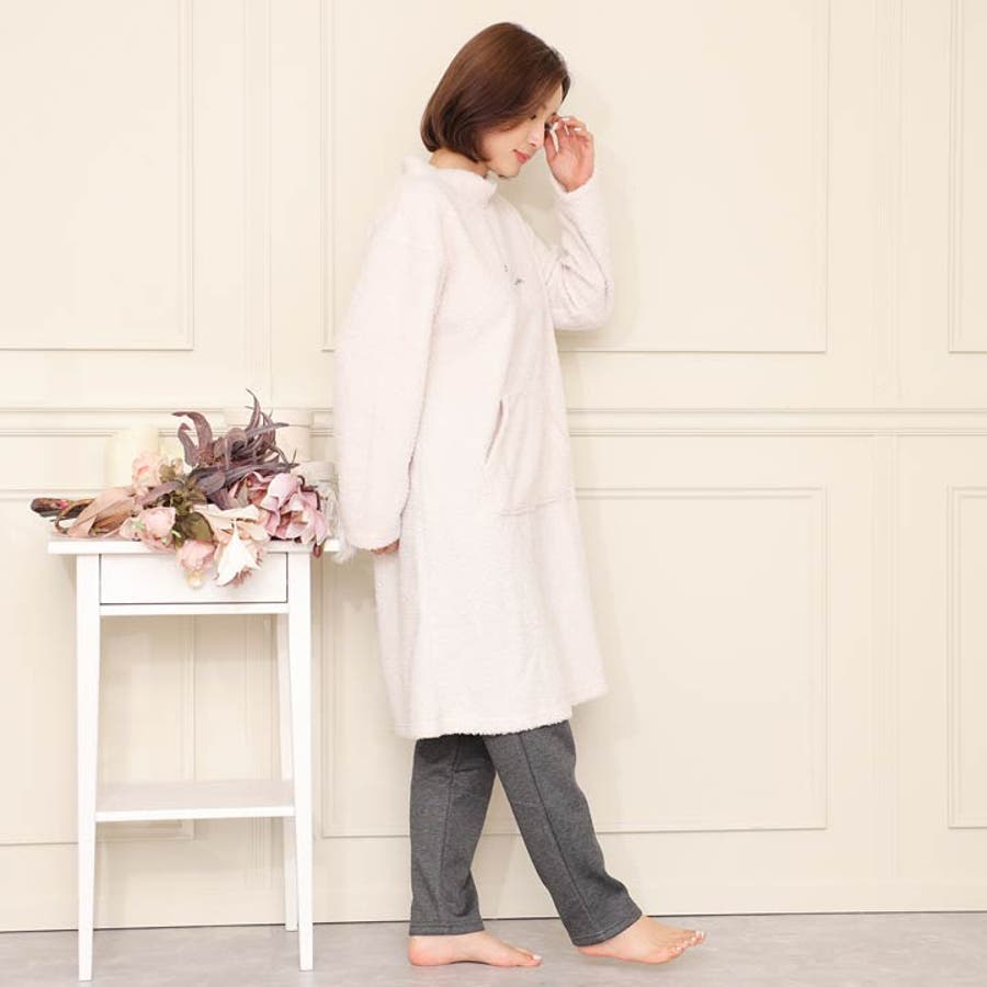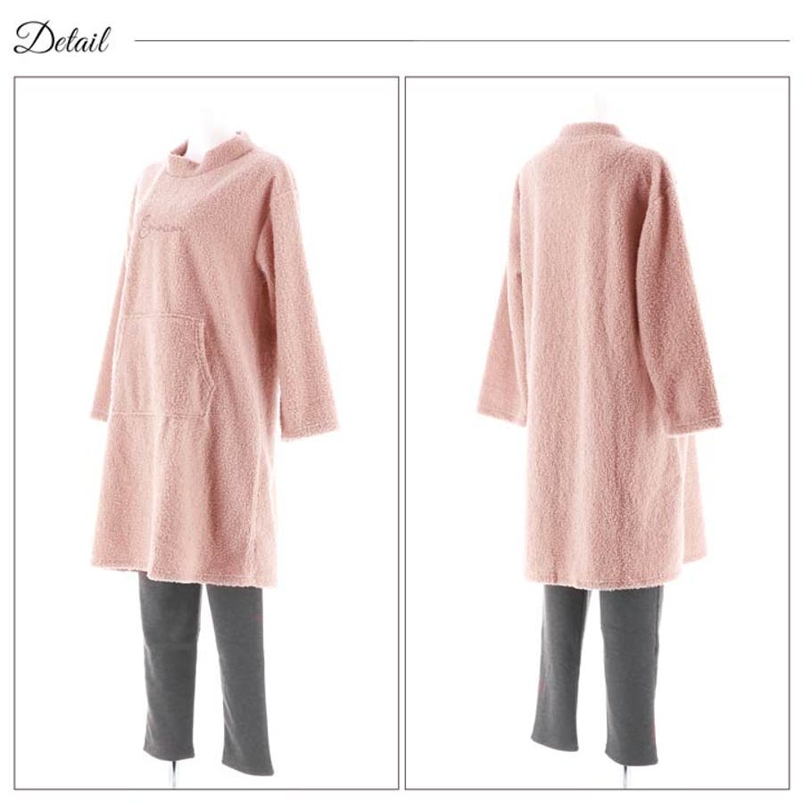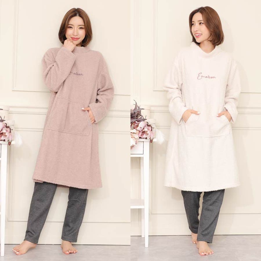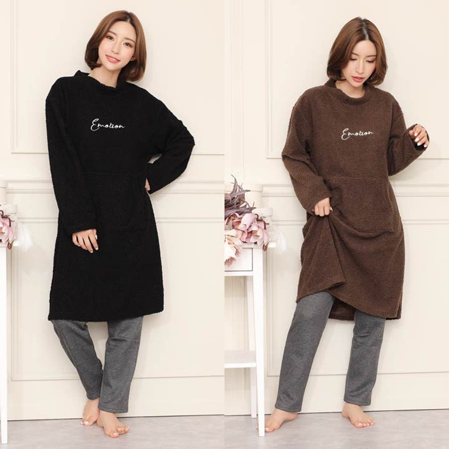 ふわふわ、もこもこのトップス&パンツのルームウェア上下セット。寒い日の部屋着はもちろんパジャマとしても大活躍です。フロントにはポケット付きで利便性も◎お泊りやパジャマパーティにも最適です★ご家族やお友達、恋人へのプレゼントとしてもオススメです。可愛いワンポイントロゴ入り♪