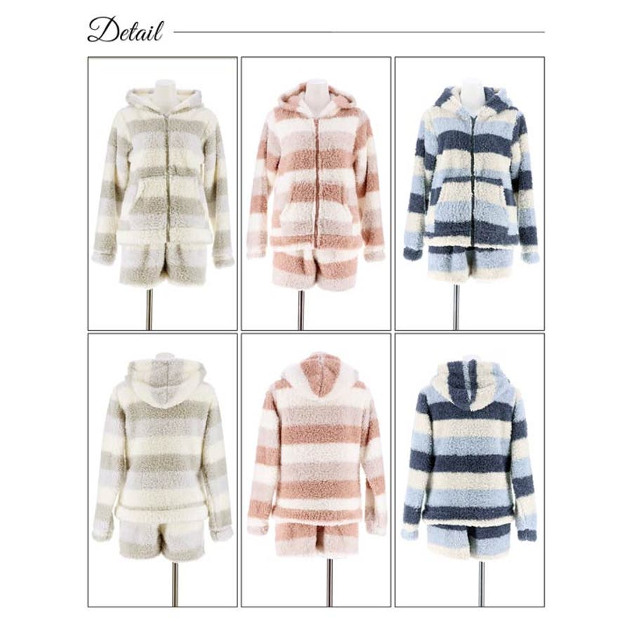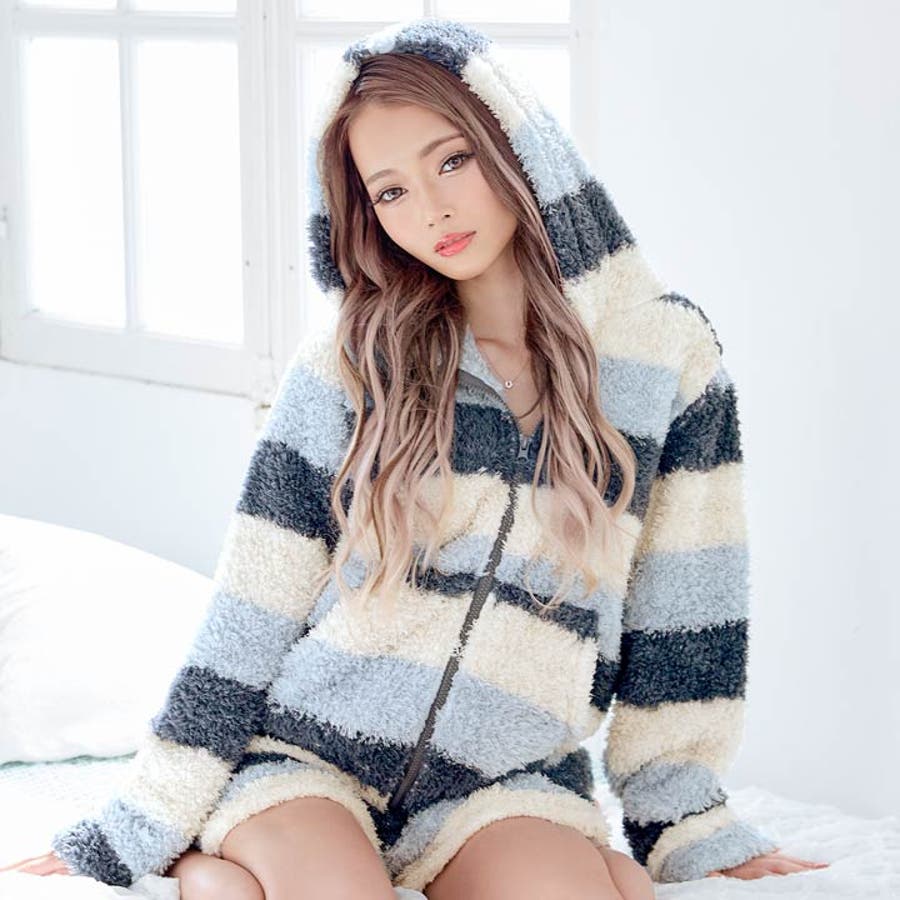 季節感溢れるな素材が可愛らしいルームウェア。シンプルながらも3色のボーダーラインがカジュアルガーリーな着こなしに◎ 上下別々でも使用できるリラックスタイムにもぴったりなアイテムです♪