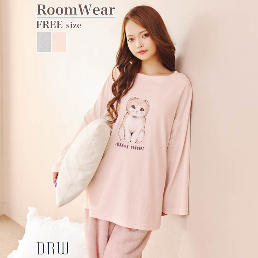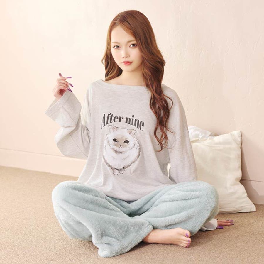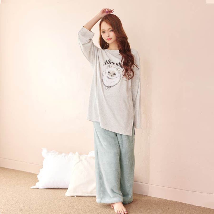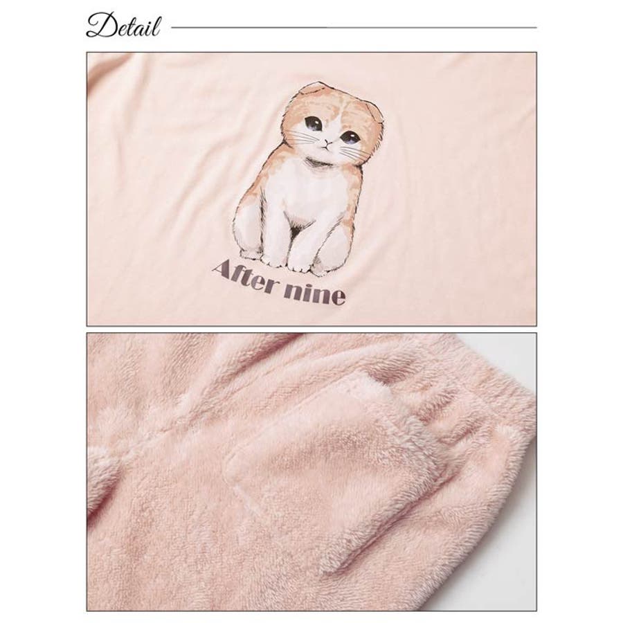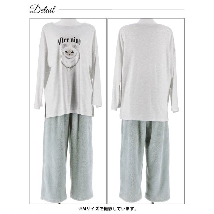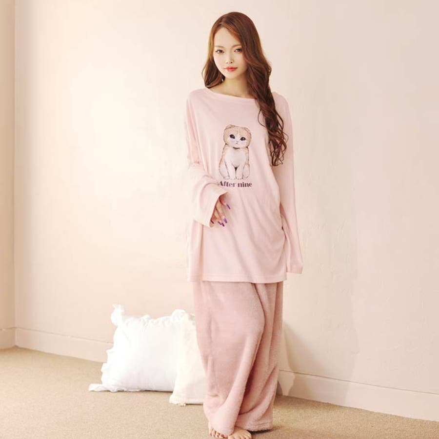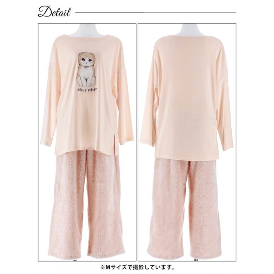 チャーミングキャット長袖トップス&ふわふわロングパンツルームウェア