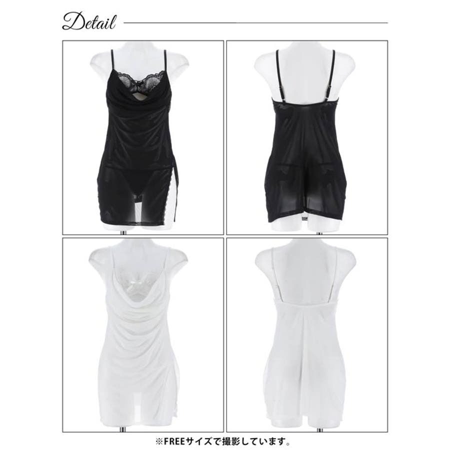 ゆったりとしたドレープシフォンから覗くバストレースが色気抜群なベビードール。大胆なサイドスリットが美脚効果&大人セクシーな印象を与えてくれます◎ 後ろ姿から透けて見えるTバックスタイルも魅力的な1着です♪
