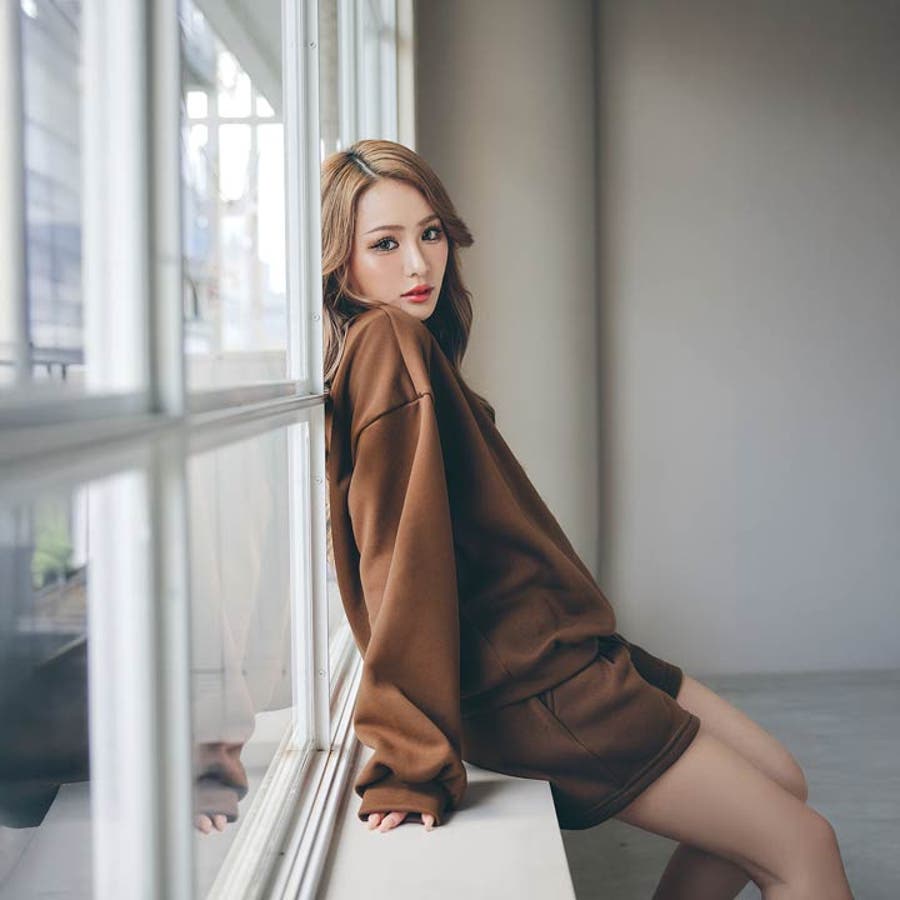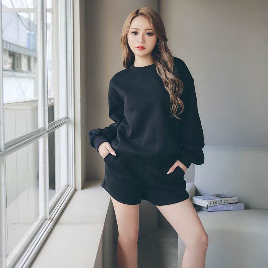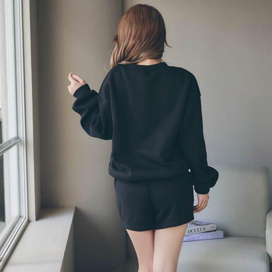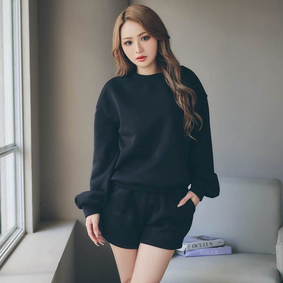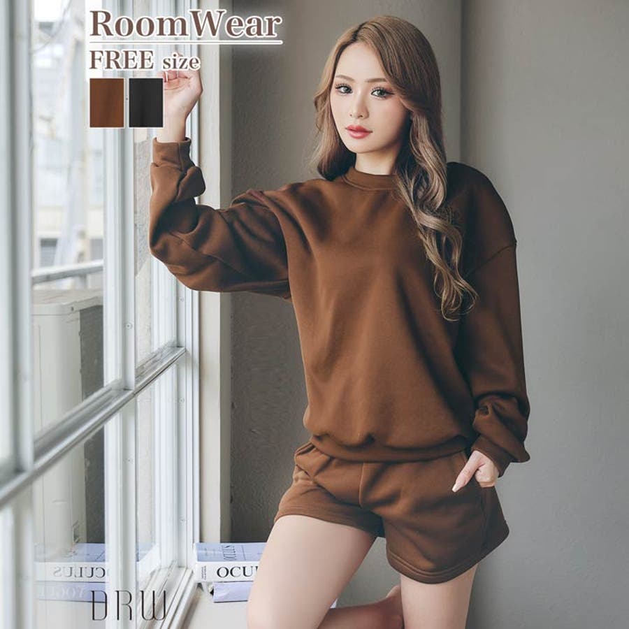 ワンカラー長袖プルオーバー&ショートパンツルームウェア