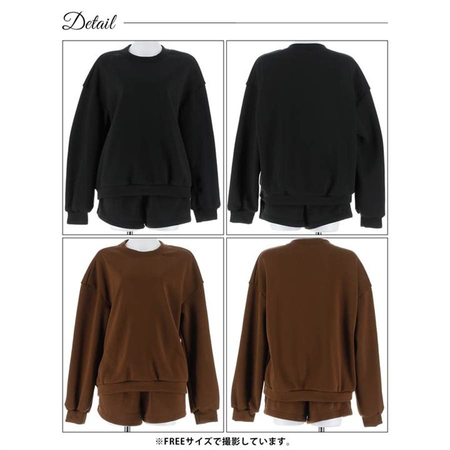 ゆったりとしたプルオーバーとウエストゴム仕様のショート丈パンツがおうちでのリラックスタイムにぴったりなルームウェア♪ 足さばきの良いショートパンツスタイルは女性らしいヘルシーな印象も与えてくれる1着です!モデル…minori(身長168cm/着用サイズフリー)
