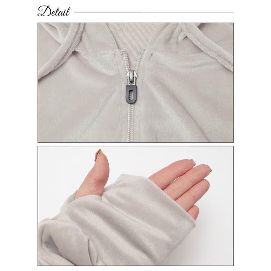 なめらかな肌触りで着心地快適なベロア素材のジップパーカー&ロングパンツセットアップ。