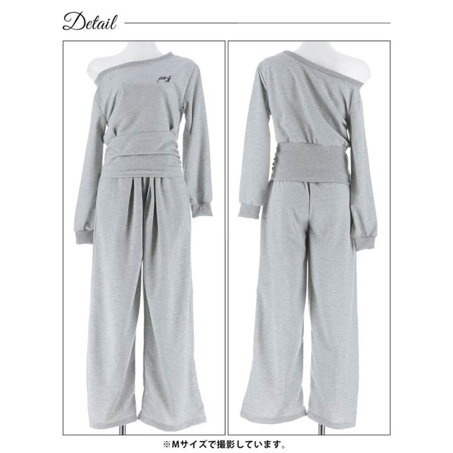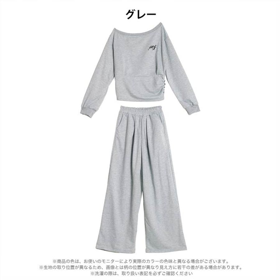ルーズオフショルダートップス&ワイドパンツルームウェア