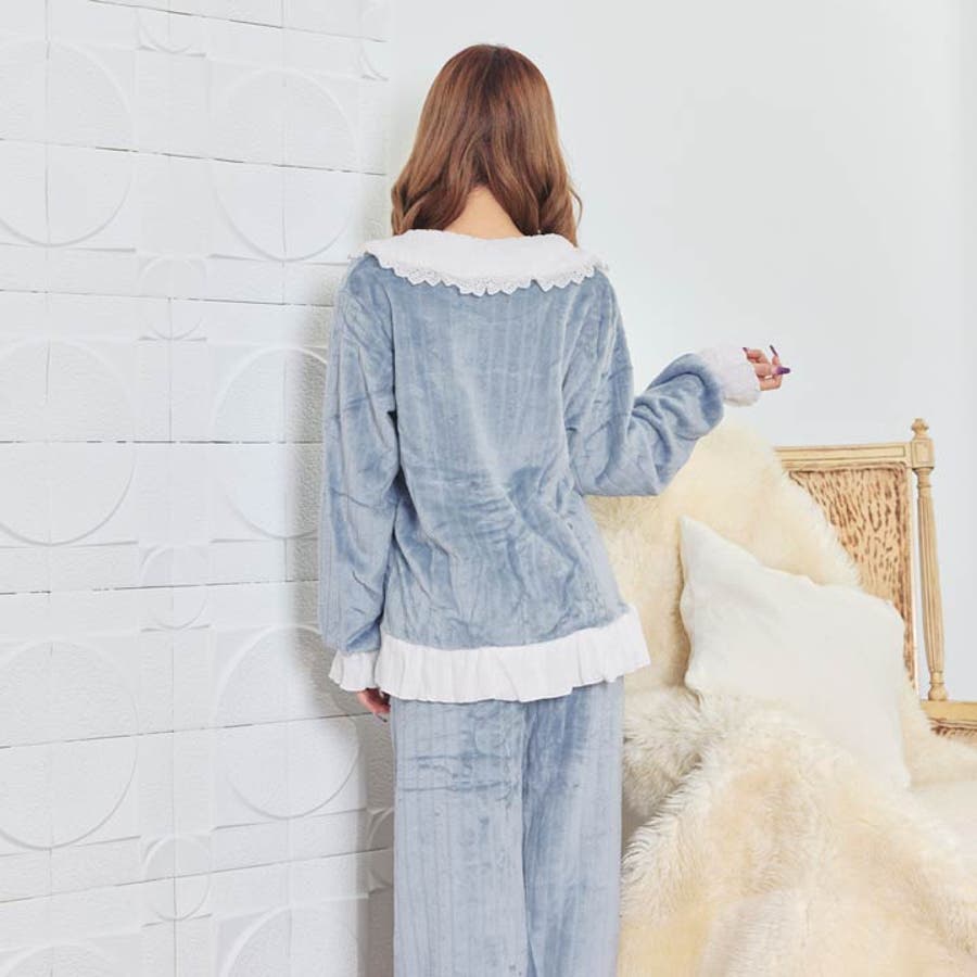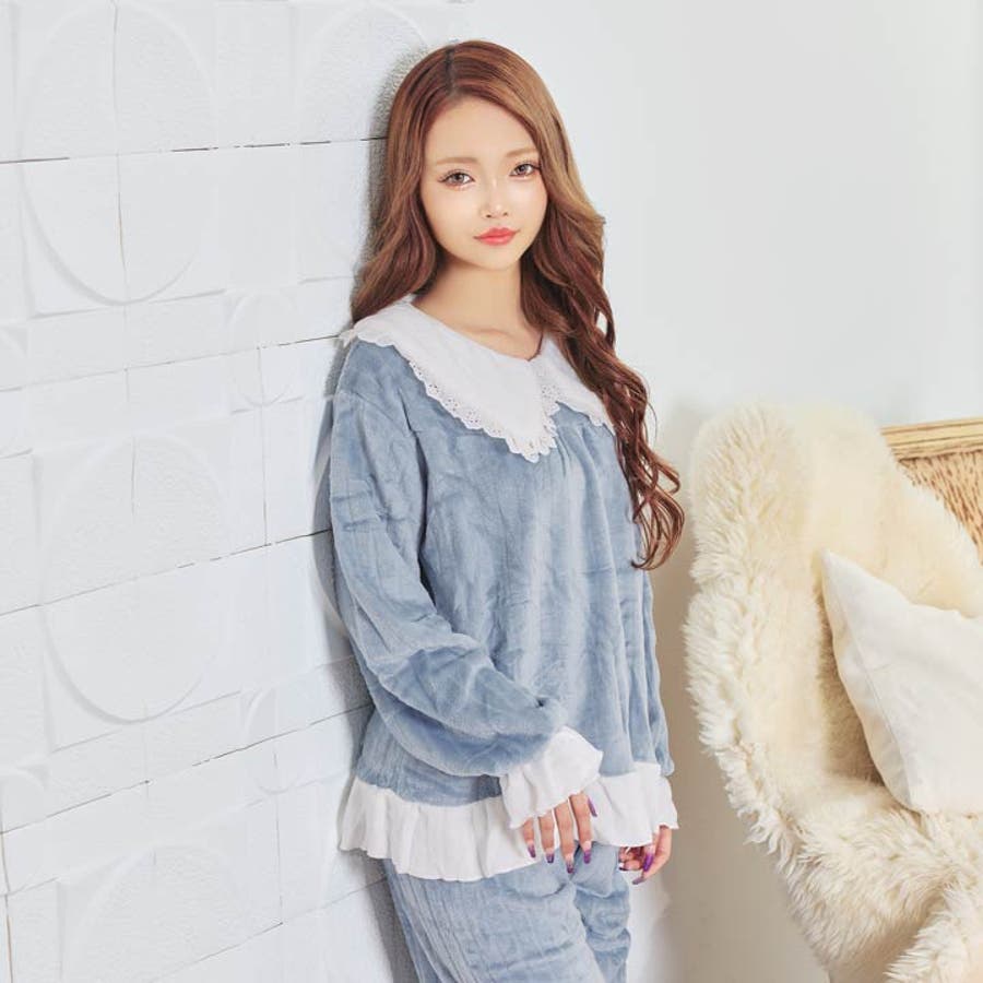 ビッグカラーフリルもこもこトップス&ロングパンツルームウェア