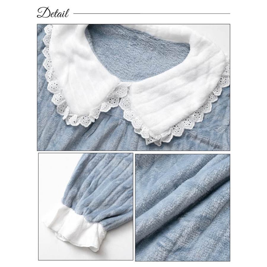 顔まわりを華やかに見せてくれる大きめの丸襟が可愛らしいルームウェア。袖口&裾部分にはフリルをあしらいガーリーなデザインに仕上げました♪ずっと触っていたくなるようなふんわりもこもこの素材で、おうち時間をあたたかく過ごせるアイテムです◎