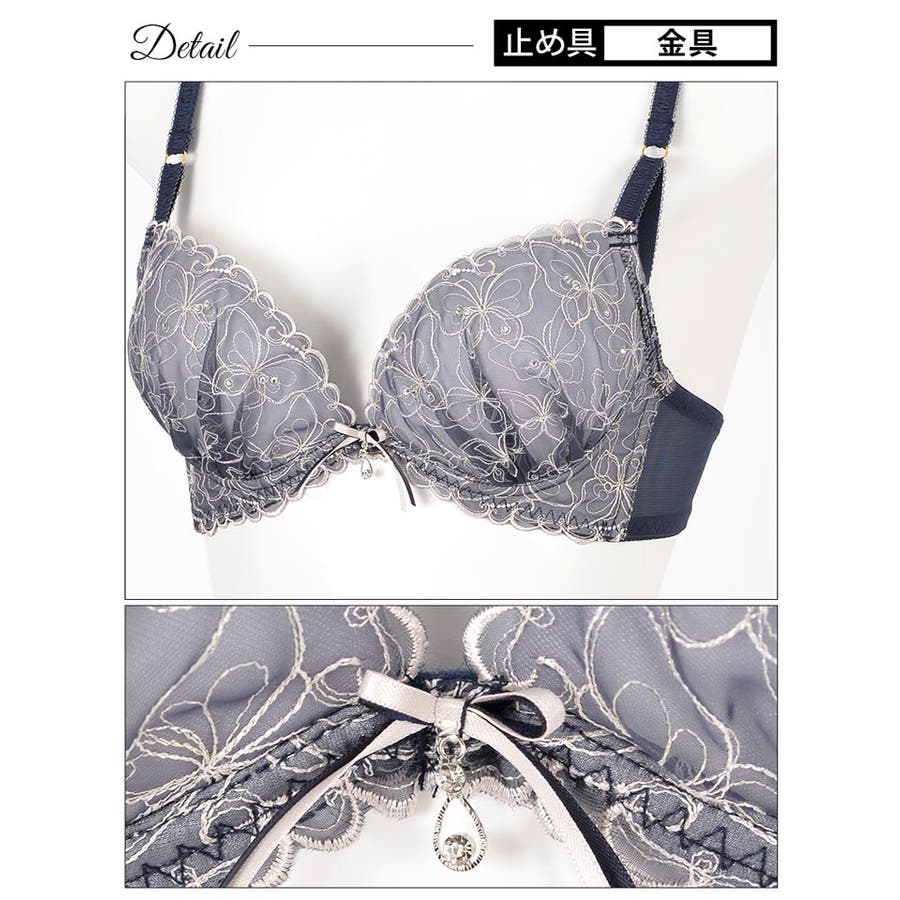 バタフライ刺繍シアーオーガンジーブラジャー&ショーツ 美乳