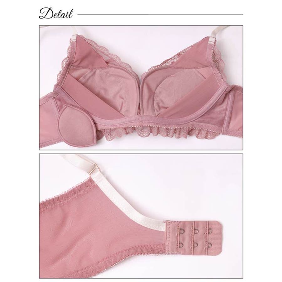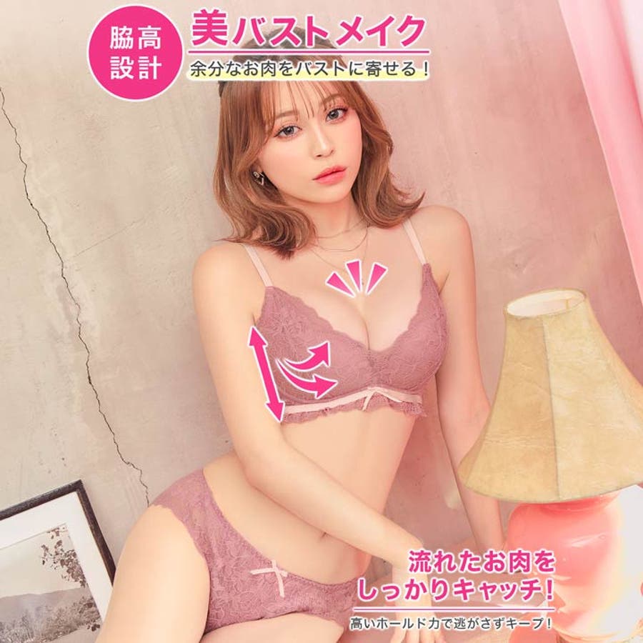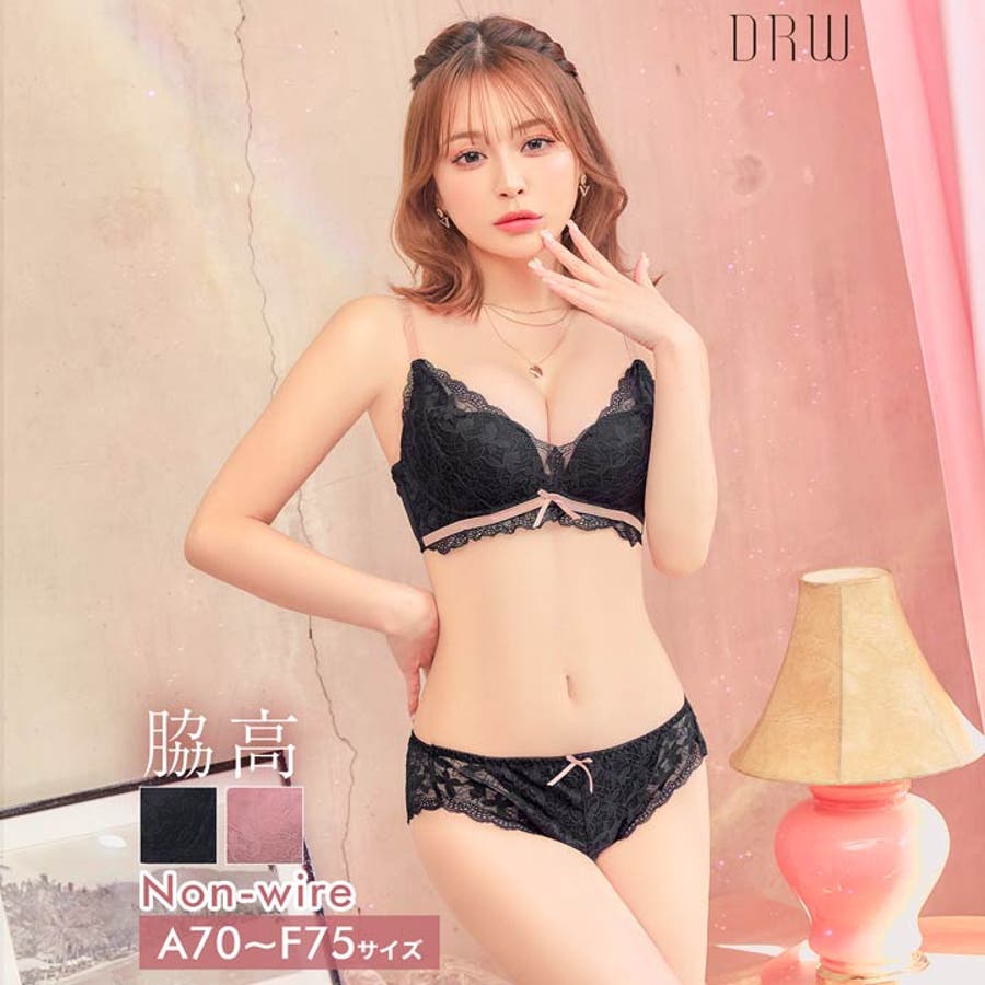 [ノンワイヤー] ドーリーロマンティックレース脇高ブラジャー&バック透けフルバッ…